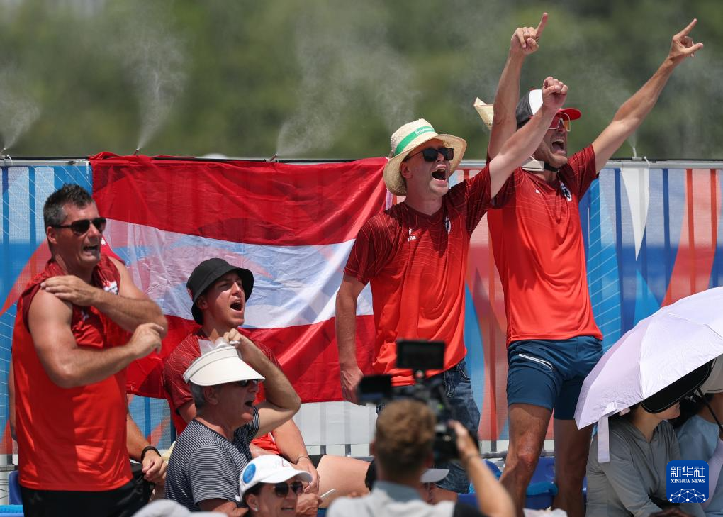 8月13日,场边的奥地利球迷们在比赛中为球队加油。