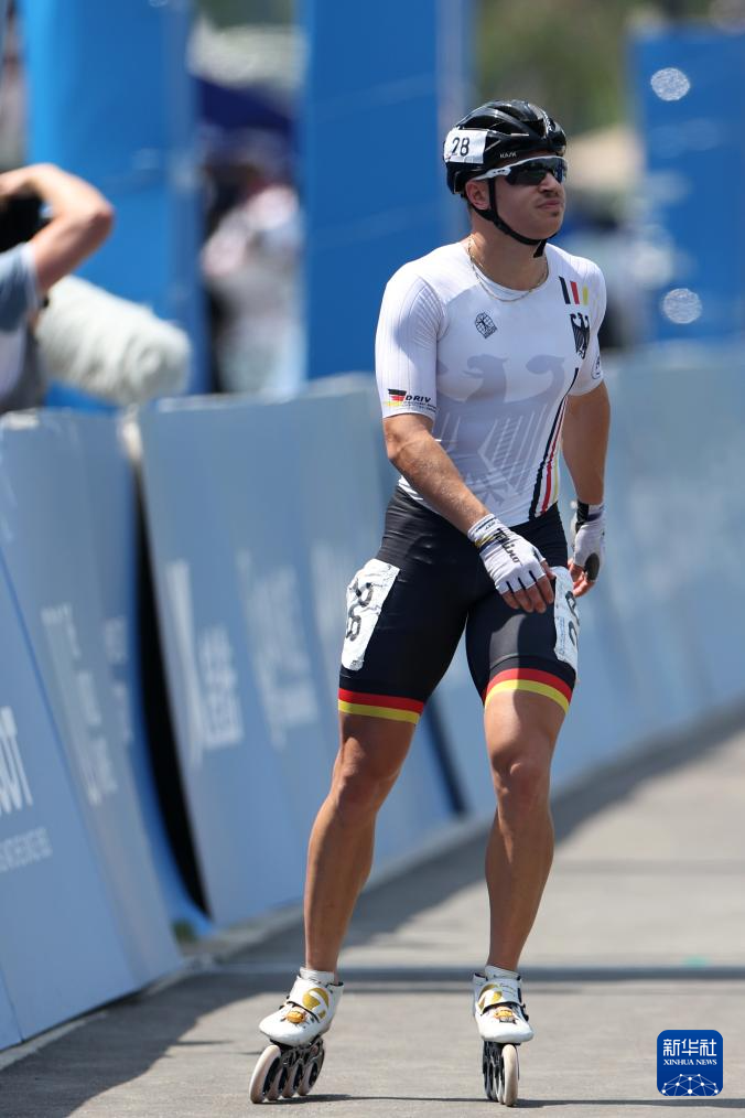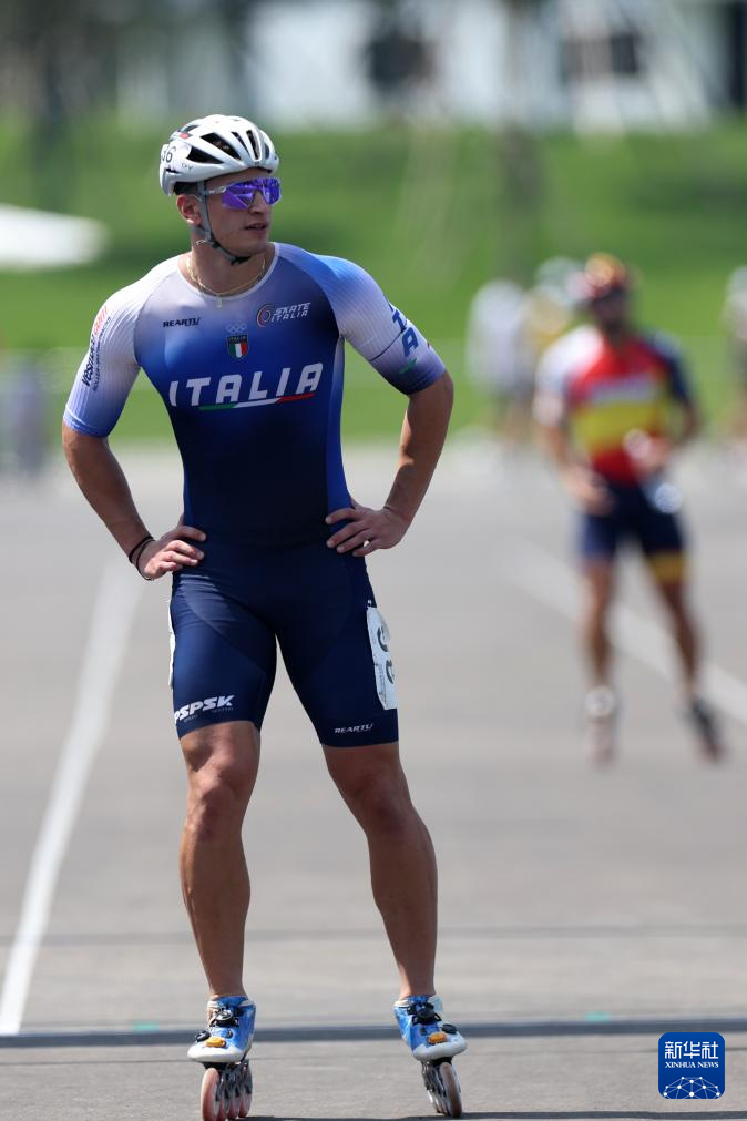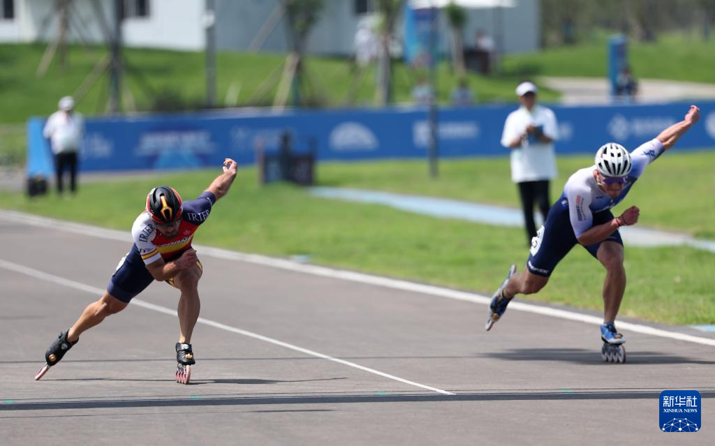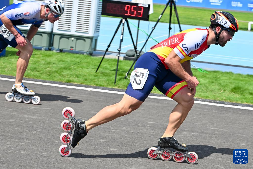 当日,在成都舒悦公园举行的2025年成都世运会速度轮滑男子公路赛(100米争先)的决赛中,西班牙选手古斯曼获得冠军,意大利选手马约尔卡获得亚军、德国选手罗恩获得季军。