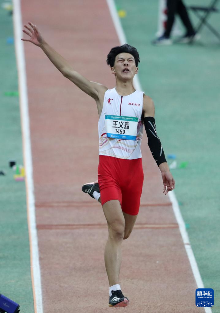 8月13日,湖南队选手王义鑫在男子跳远团体决赛中。最终,湖南队获得第三名。