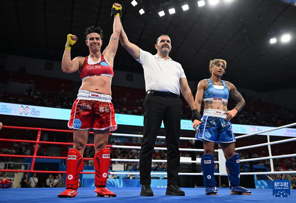 当日,在2025年成都世运会自由搏击女子K1 70公斤级铜牌赛中,塞尔维亚选手克里斯蒂奇战胜菲律宾选手巴赛丹,获得铜牌。