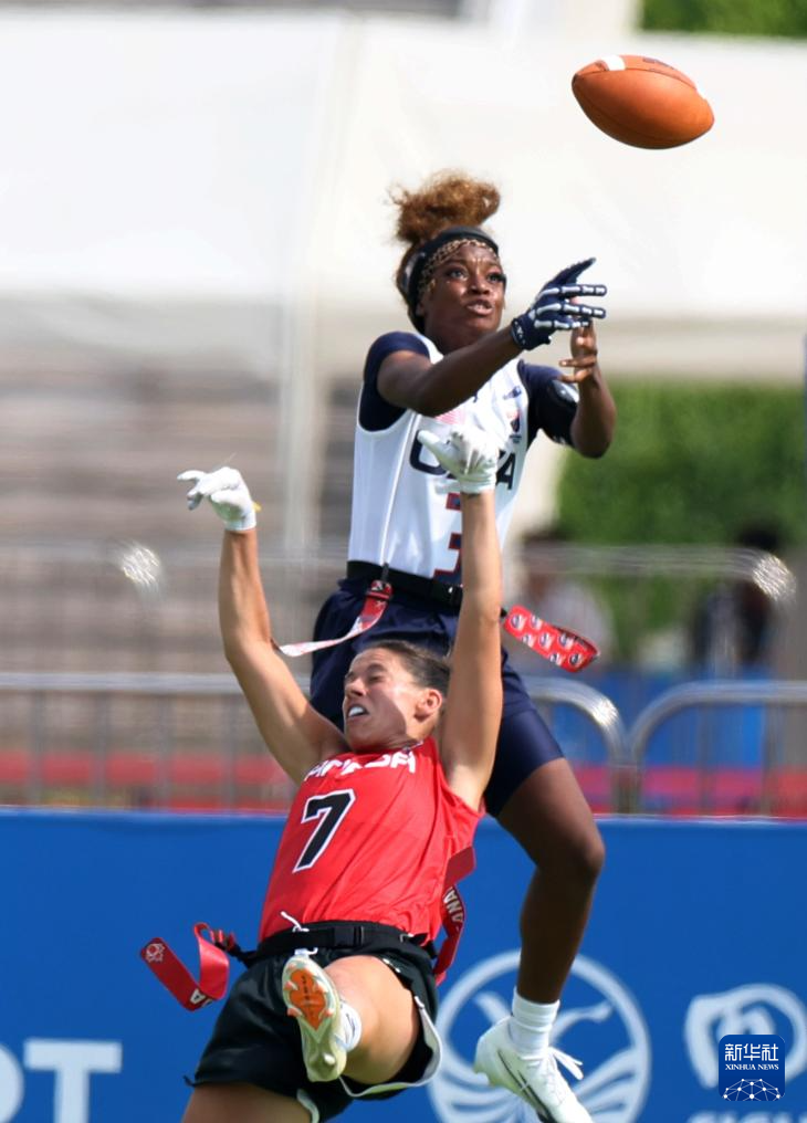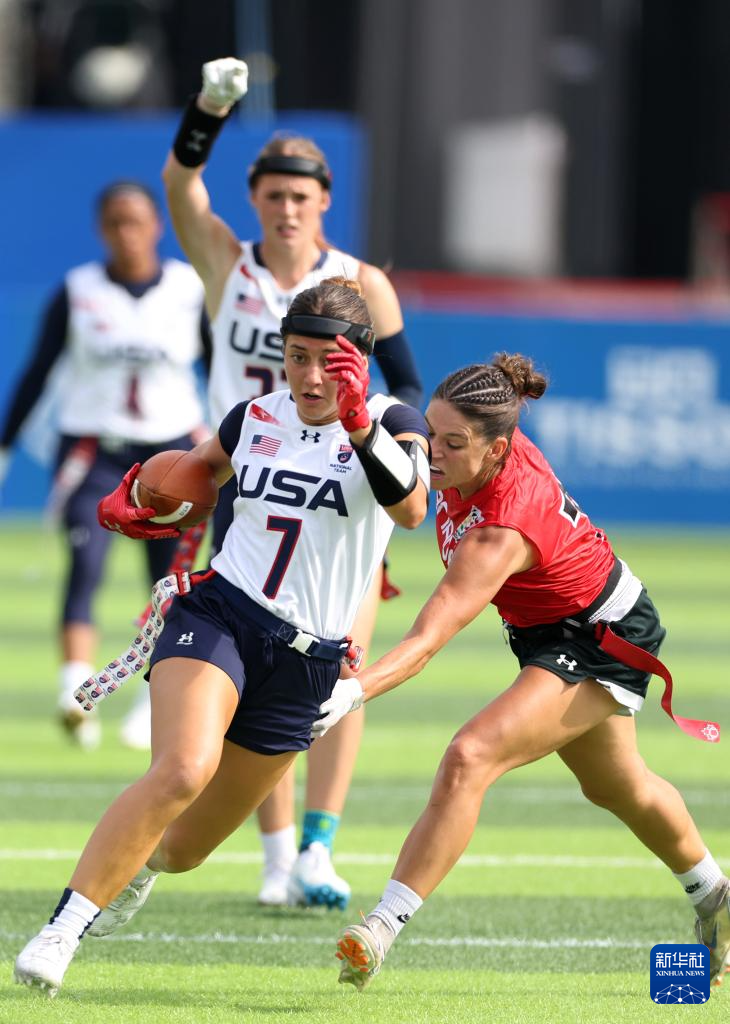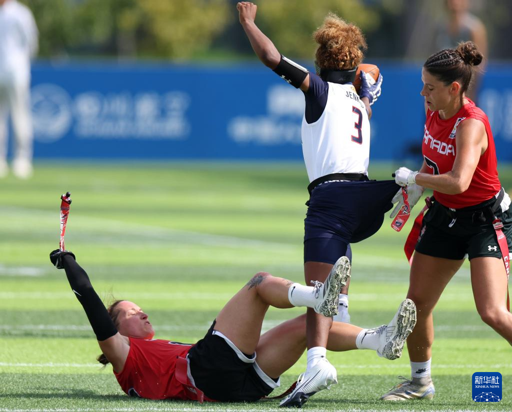 当日,在成都七中东部学校田径场举行的2025年成都世运会腰旗橄榄球A组预赛中,美国队39比31战胜加拿大队。
