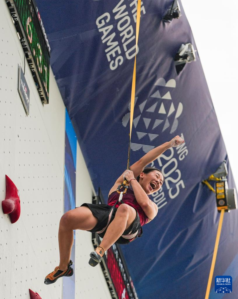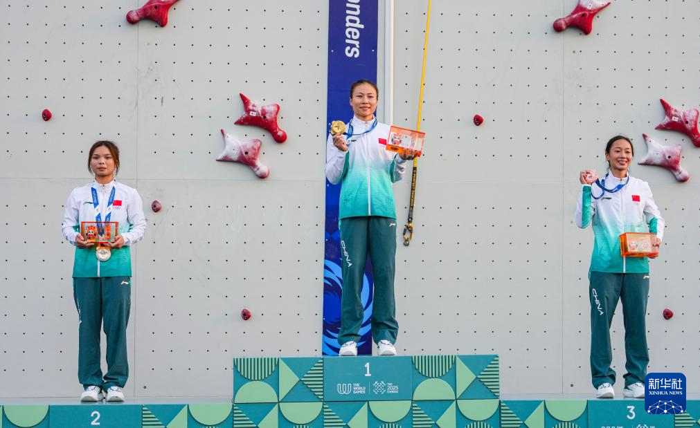 当日,在2025年成都世运会攀岩女子速度个人赛中,中国选手邓丽娟获得金牌,覃于妹获得银牌,周娅菲获得铜牌。