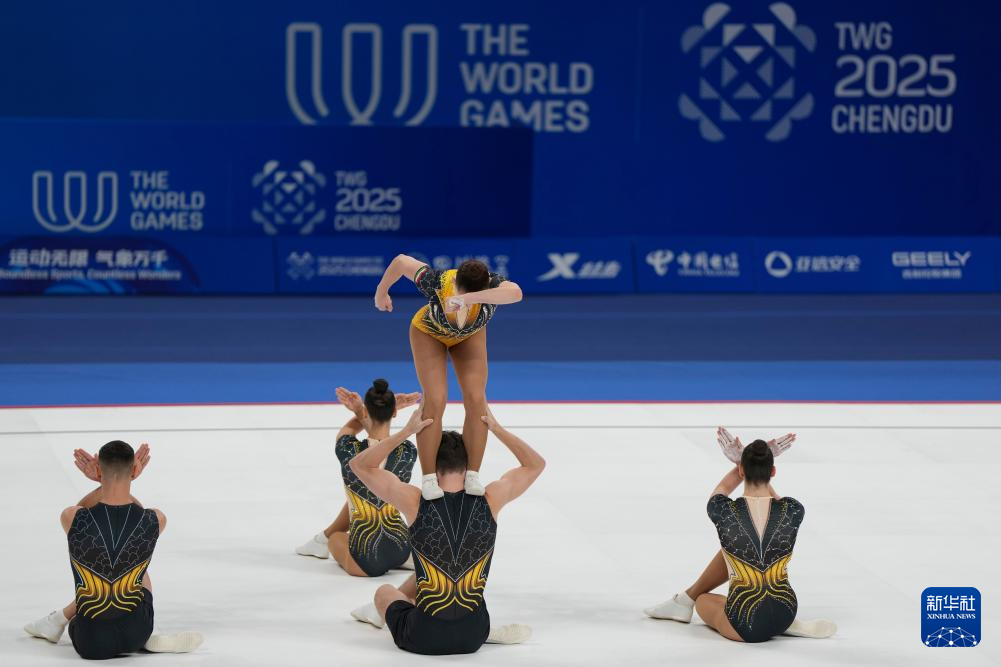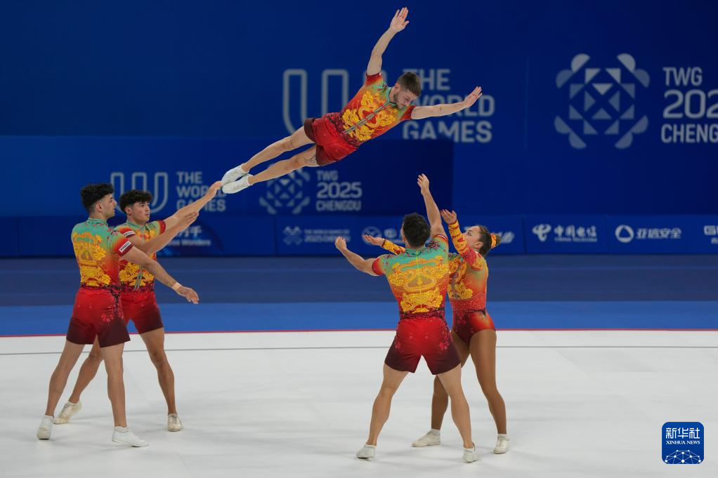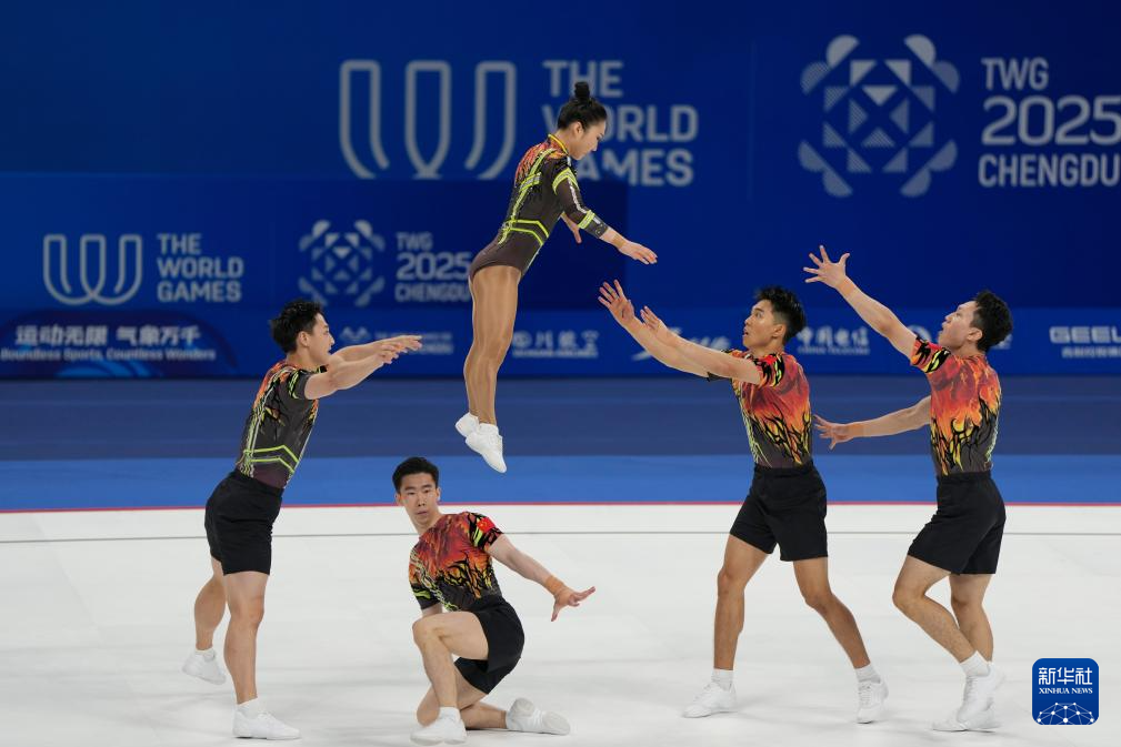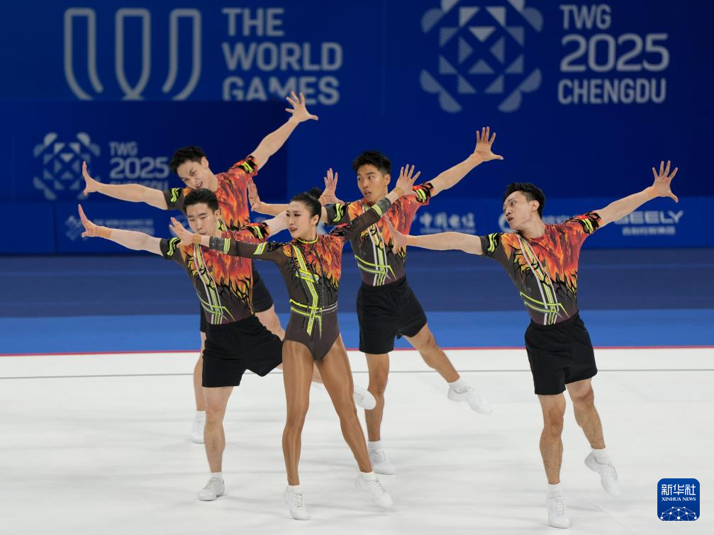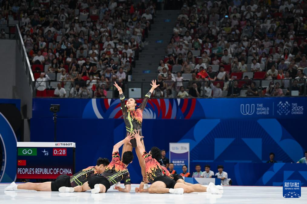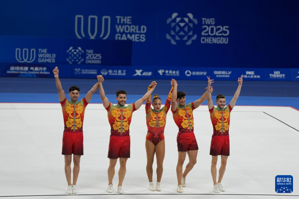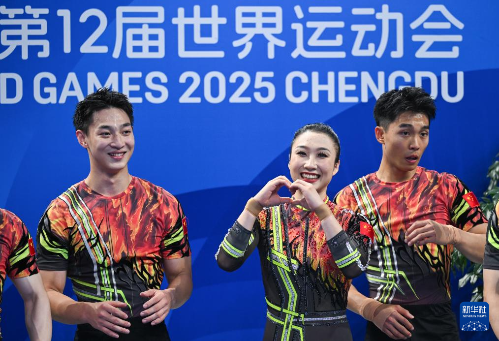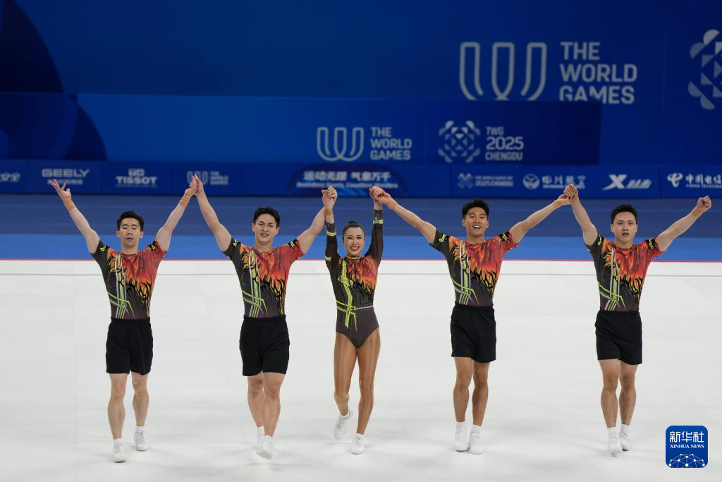当日,在2025年成都世运会健美操五人操决赛中,中国队获得冠军。