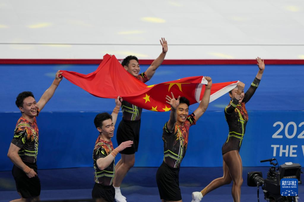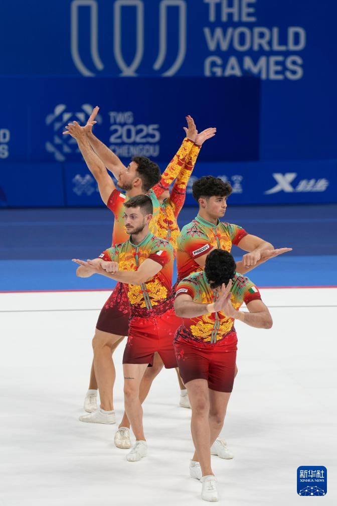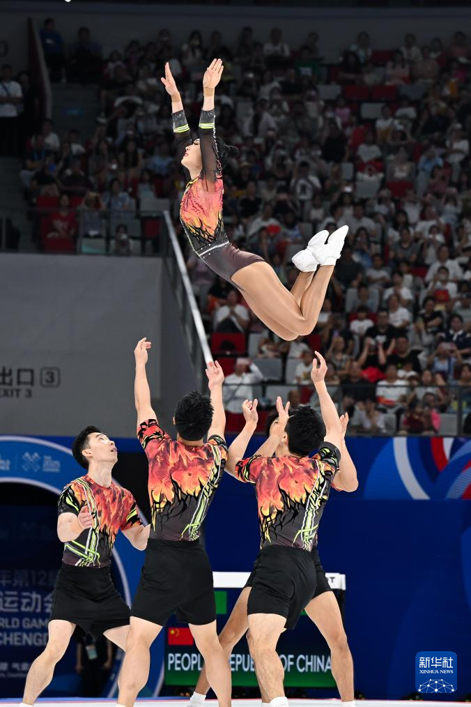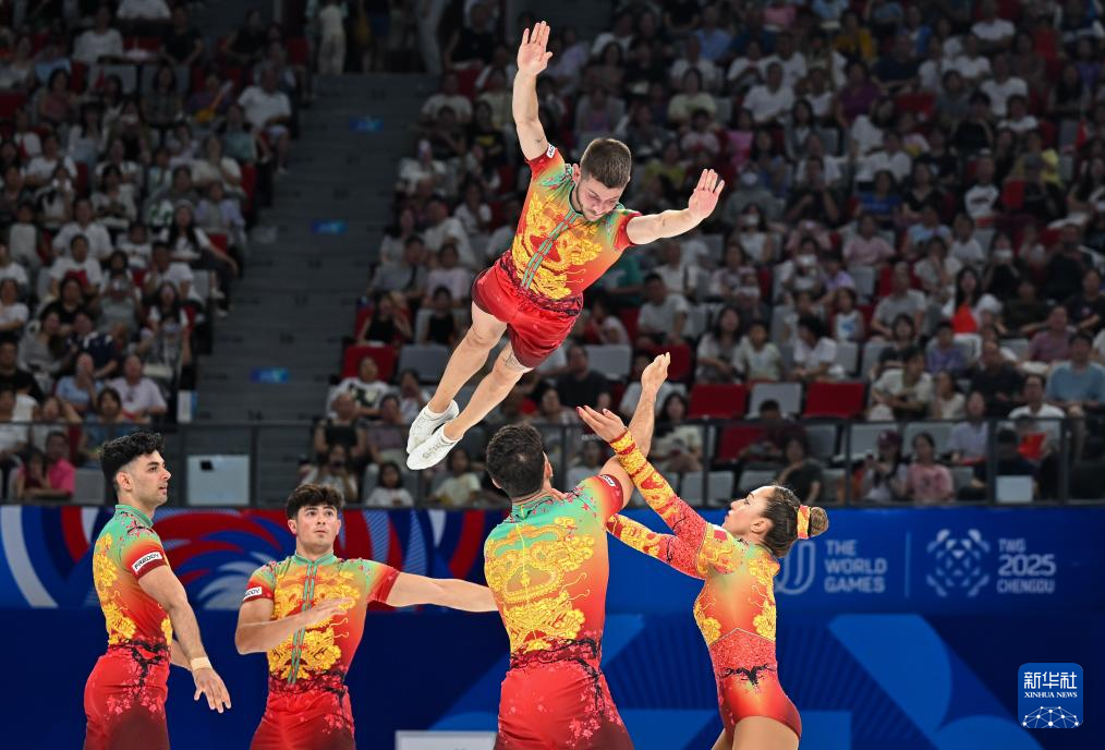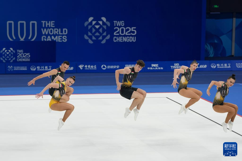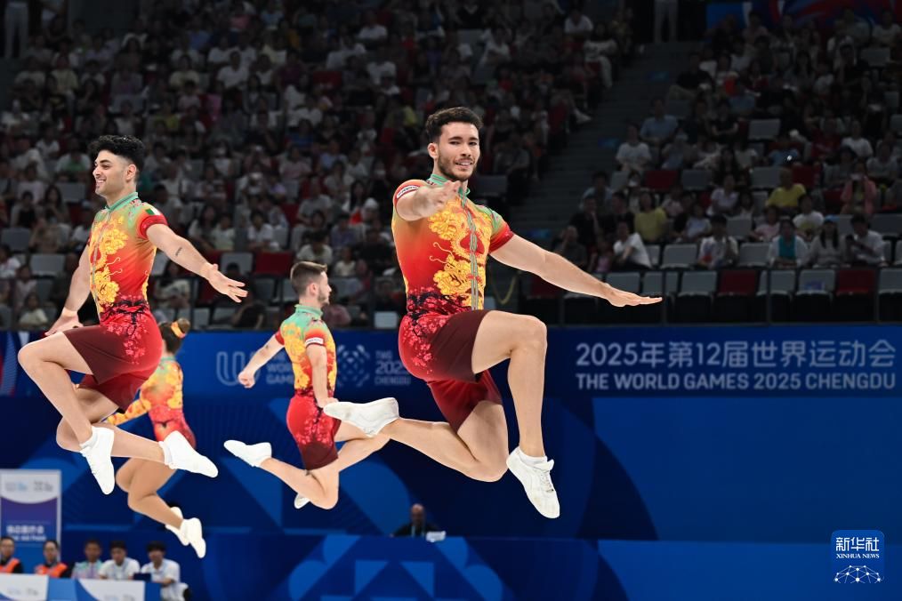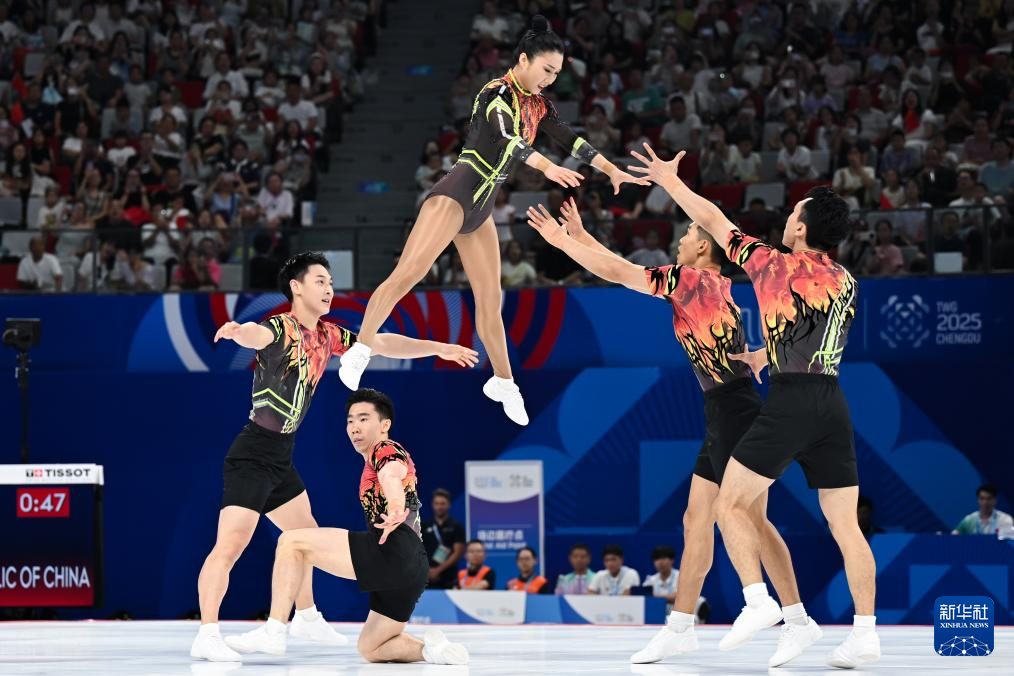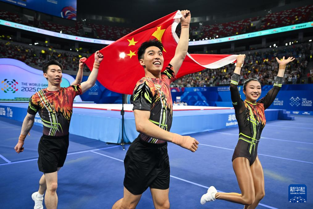 当日,在2025年成都世运会健美操五人操决赛中,中国队获得冠军。