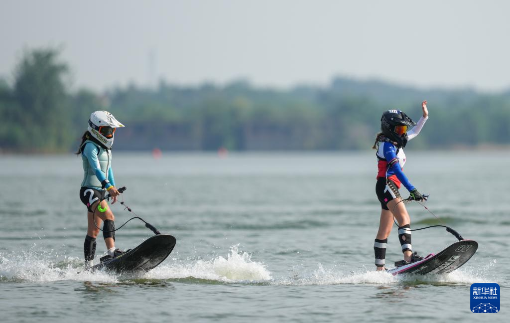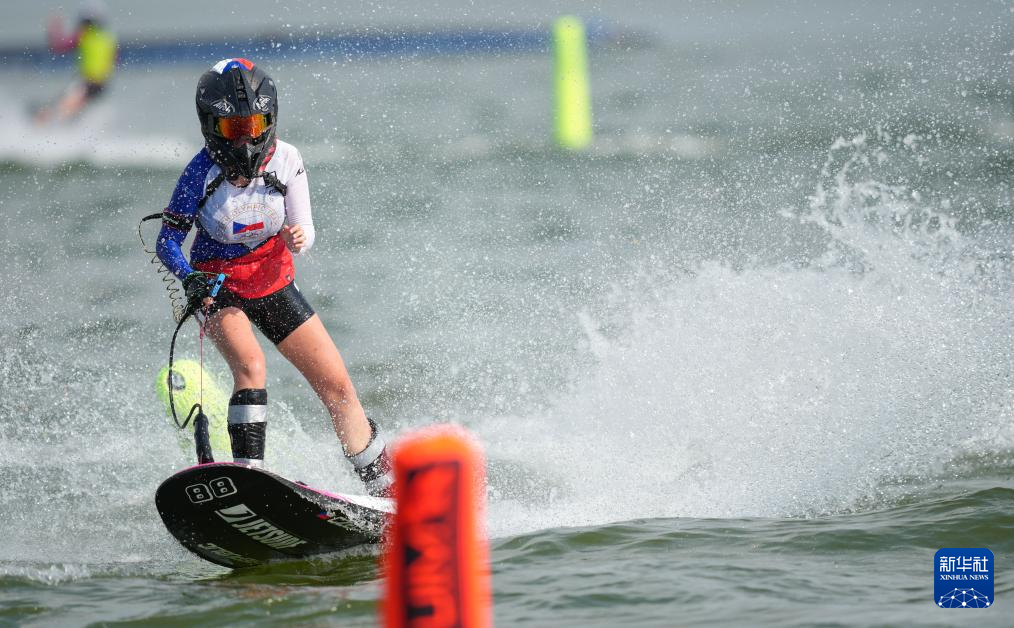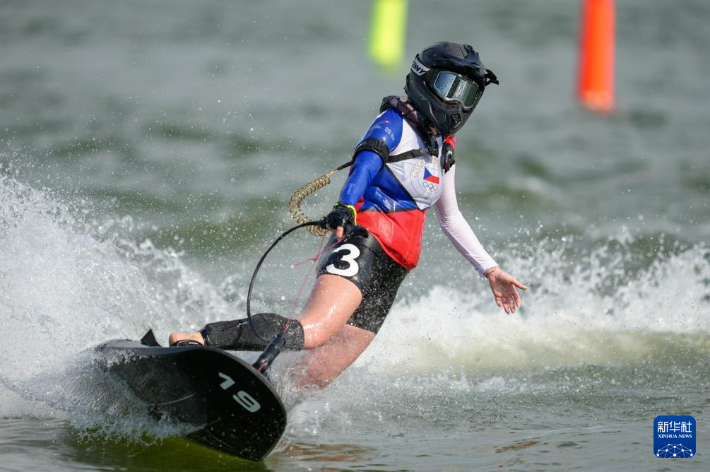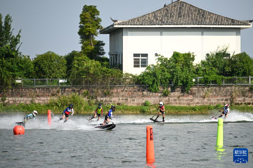 当日,2025年成都世运会摩托艇女子动力冲浪板预赛在成都三岔湖马鞍山赛场举行。
