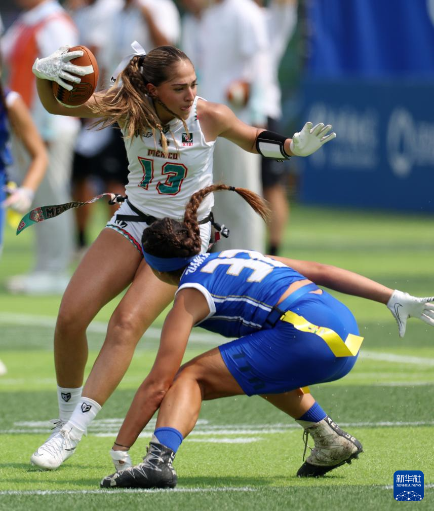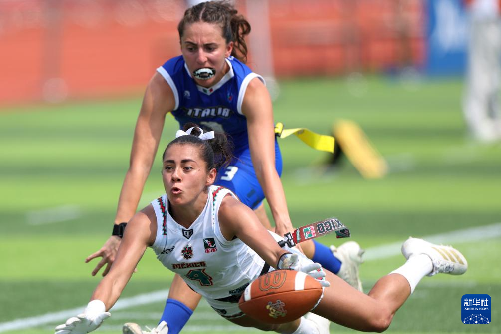 当日,在四川省成都七中东部学校田径场举行的2025年成都世运会腰旗橄榄球女子B组预赛中,墨西哥队46比7战胜意大利队。