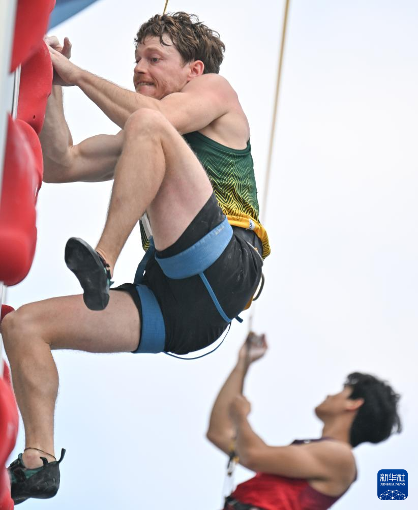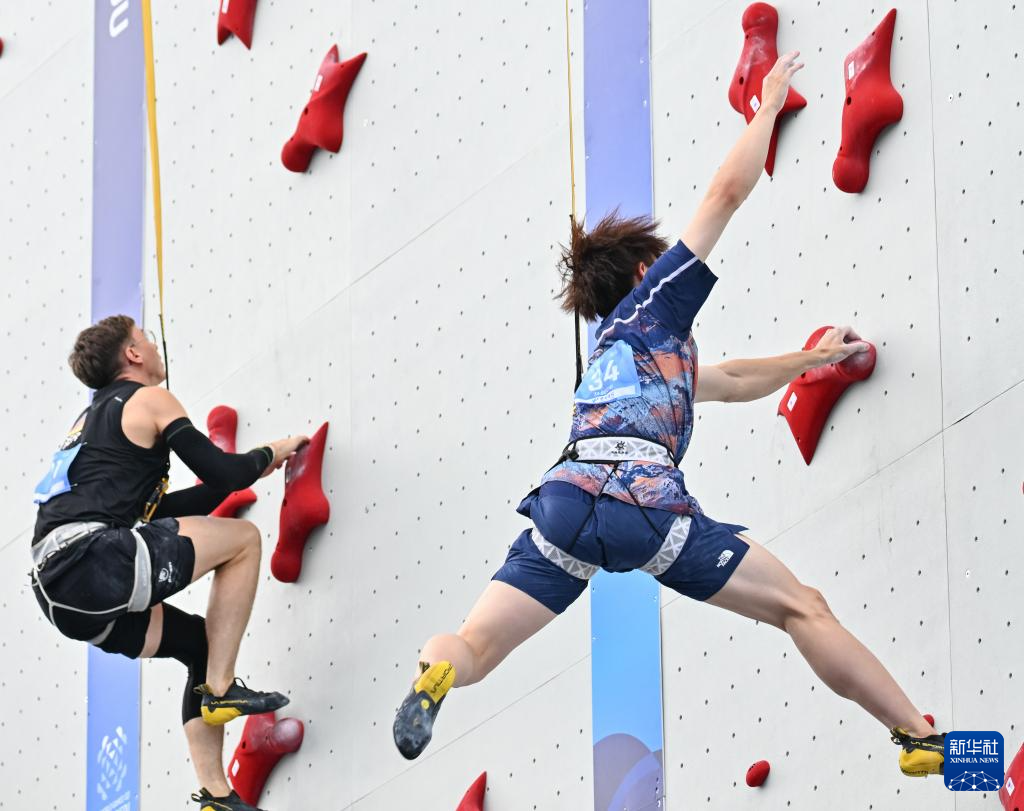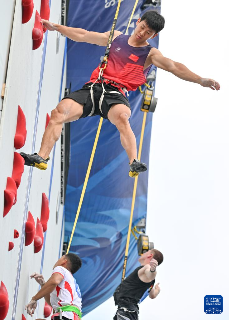当日,2025年成都世运会攀岩男子个人四条道资格赛在成都天府公园赛区举行。中国选手龙见国、储守宏、杨杰和李旭进入决赛。