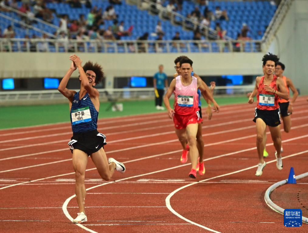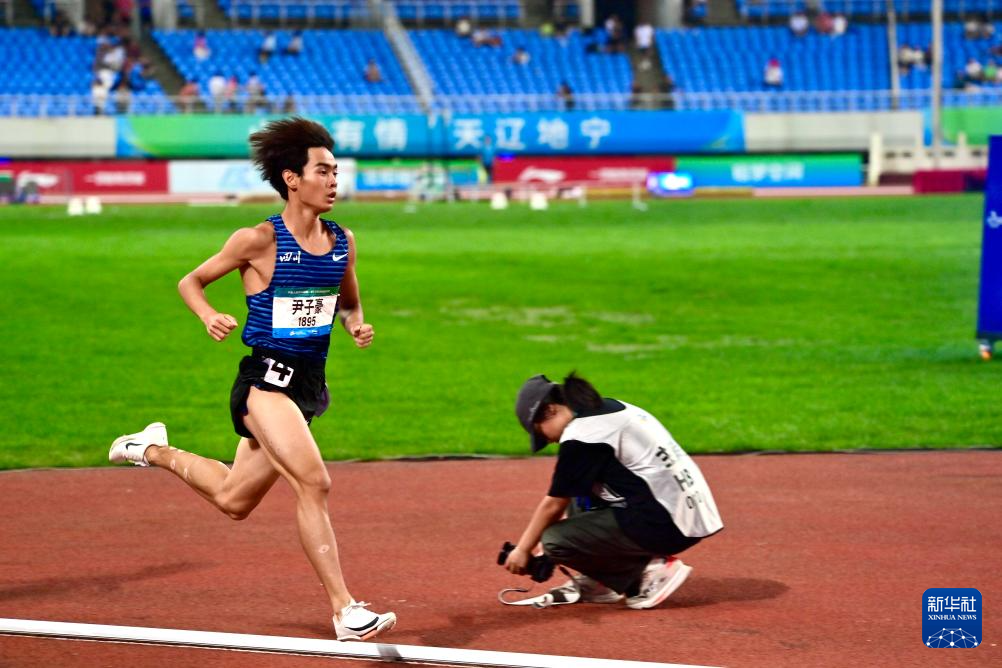 8月14日,四川队选手尹子豪(前)在比赛中冲线。最终,他获得冠军。