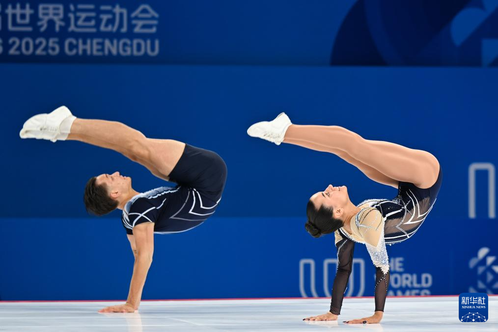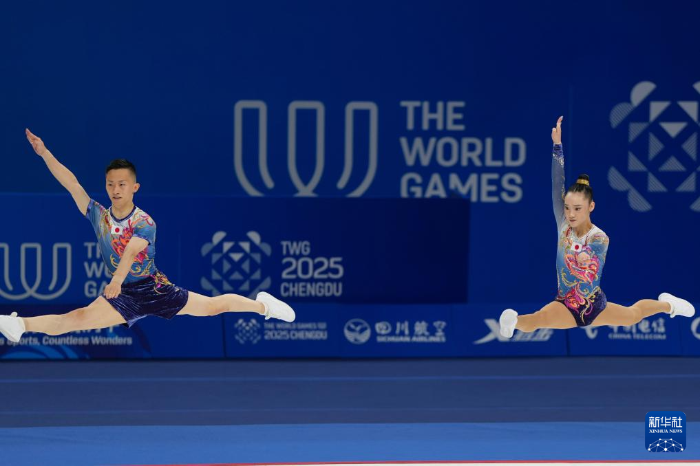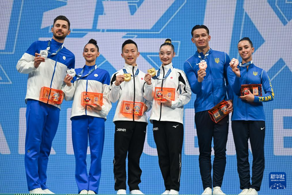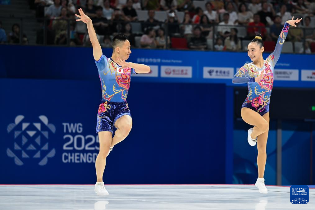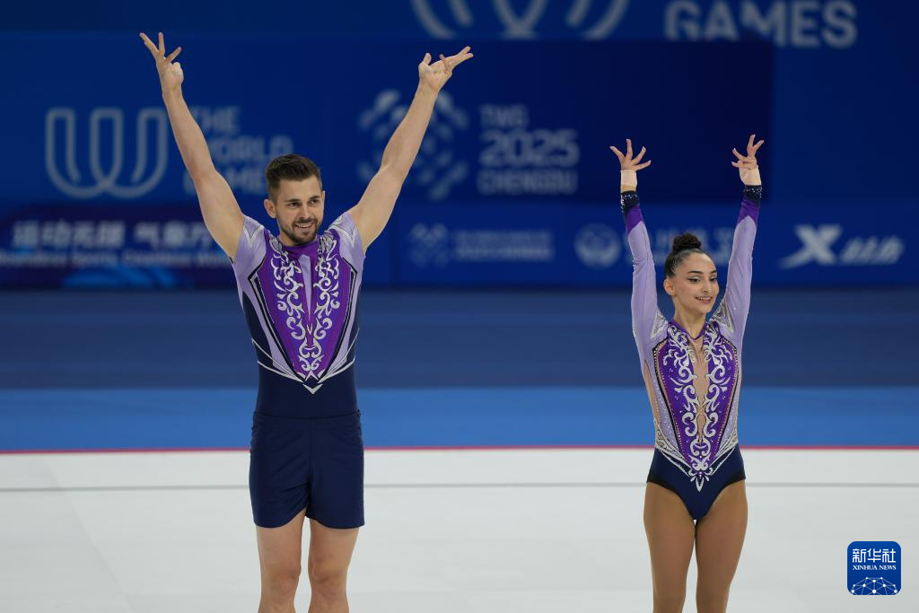 当日,在2025年成都世运会健美操混合双人决赛中,日本组合齐藤瑞己/北爪凛凛获得冠军。