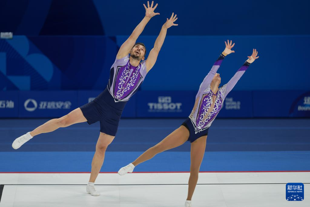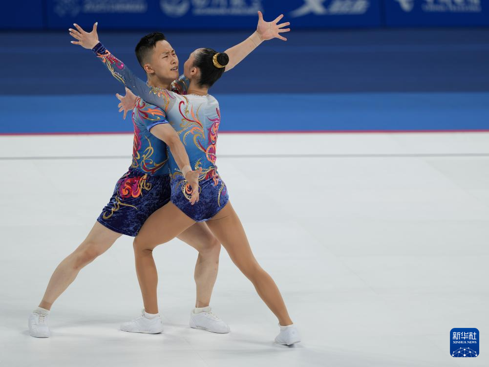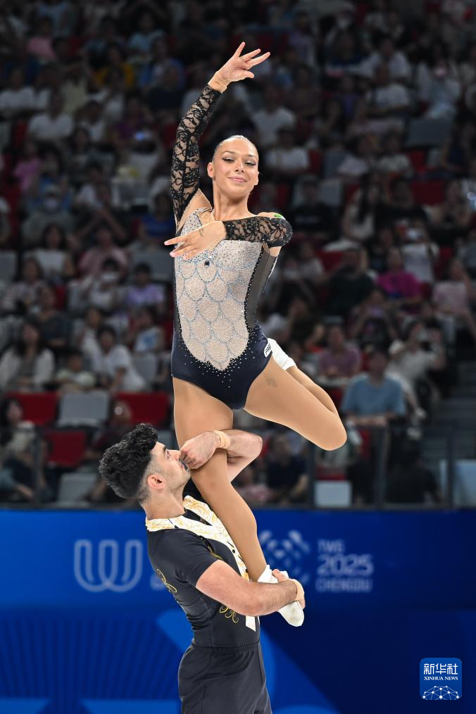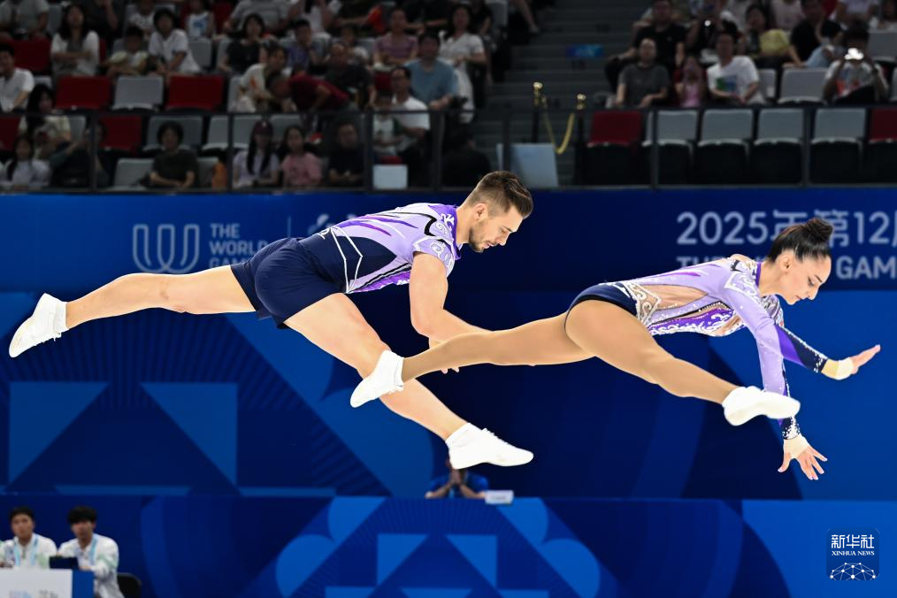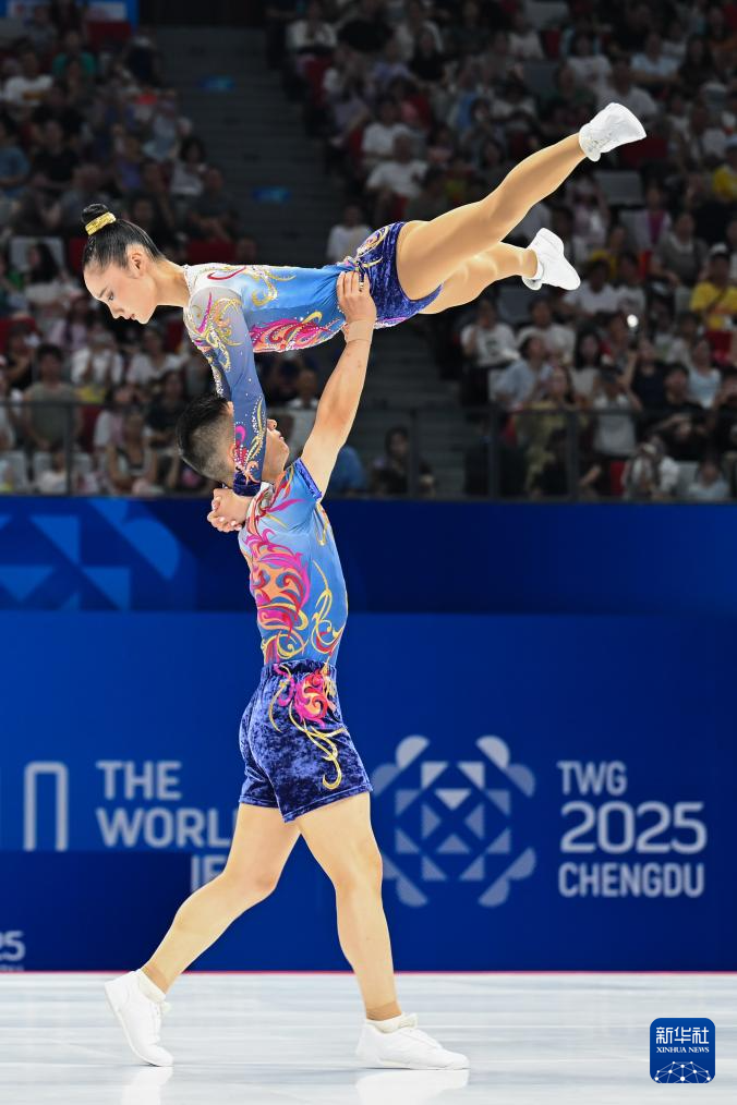 当日,在2025年成都世运会健美操混合双人决赛中,日本组合齐藤瑞己/北爪凛凛获得冠军。
