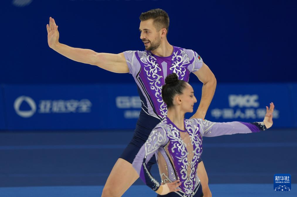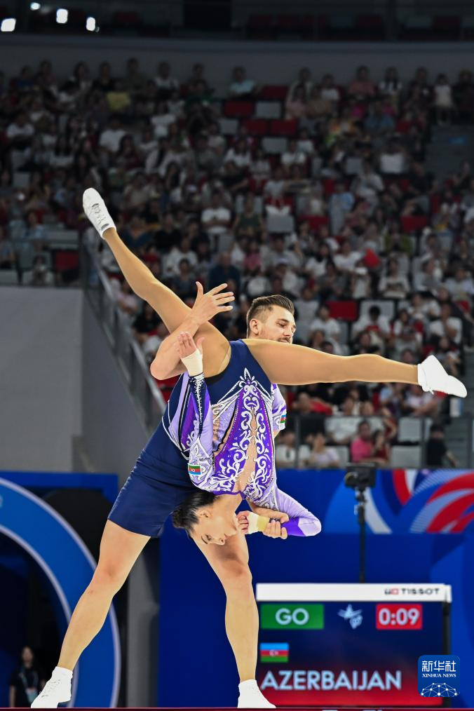 8月15日,阿塞拜疆组合多尔马托夫(前)/马迪娜在比赛中。最终,他们获得亚军。