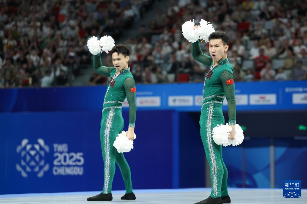 当日,2025年成都世运会啦啦操双人花球半决赛第一轮举行。