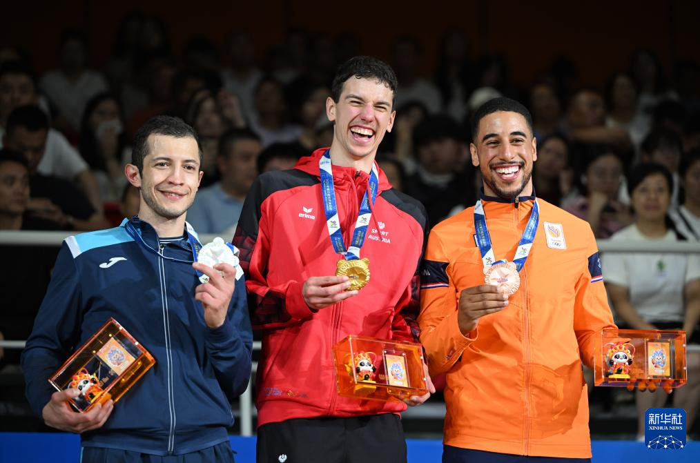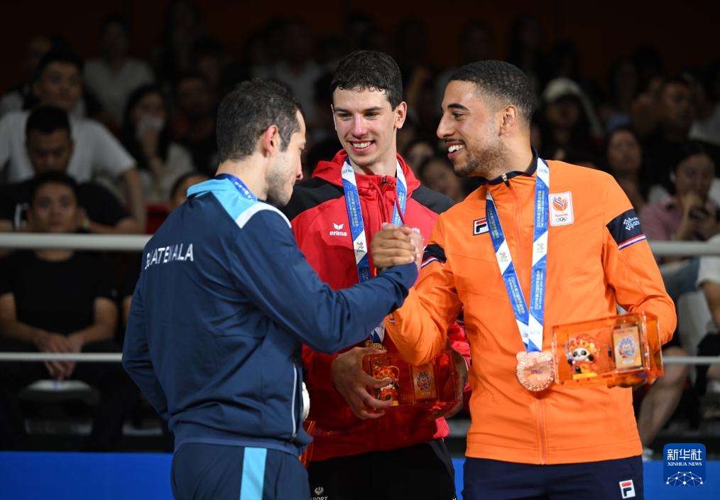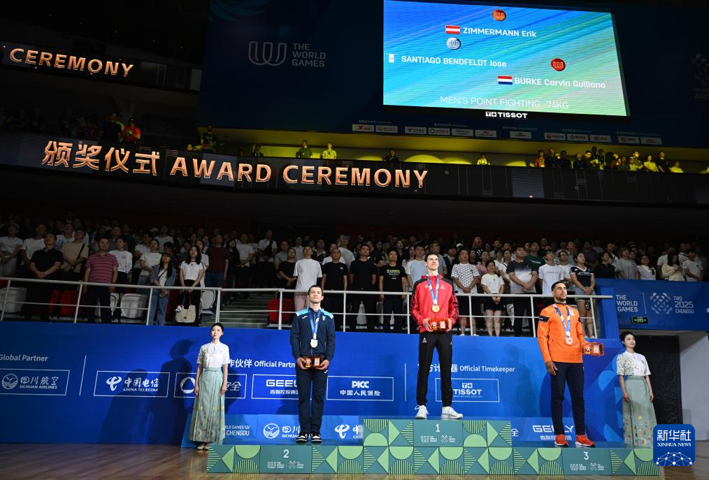 当日,2025年成都世运会自由搏击男子半接触74公斤级颁奖仪式举行。