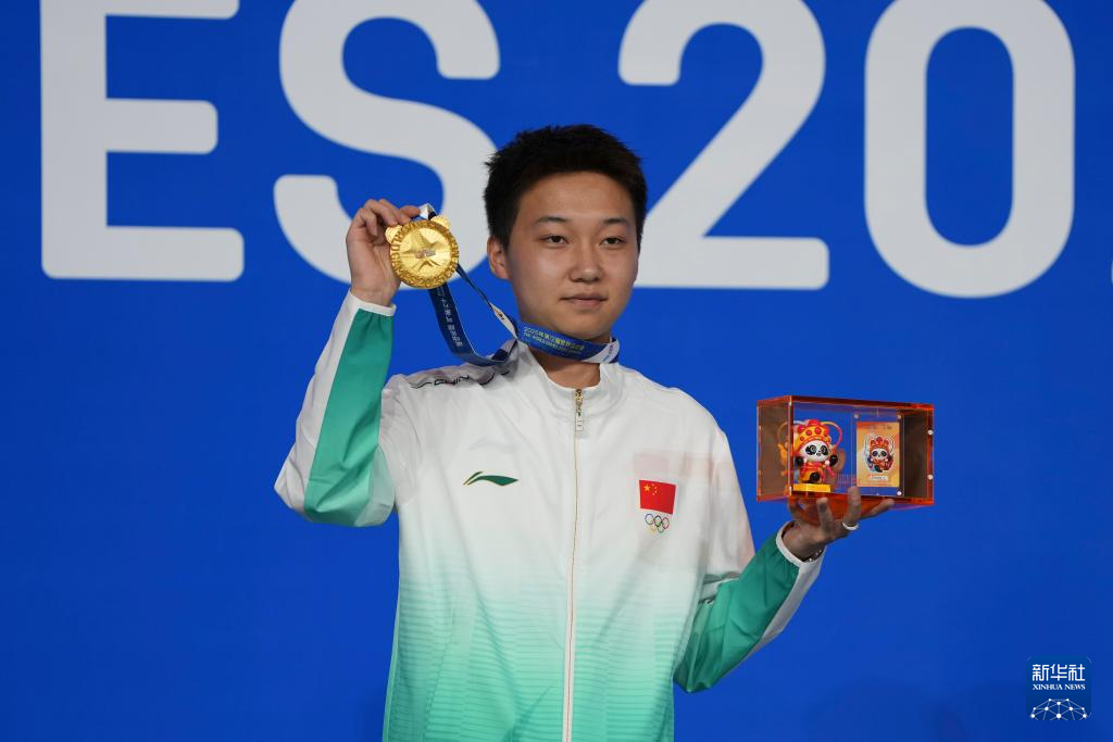 8月14日,台球男子三库开伦冠军韩国选手乔名武在颁奖仪式上。