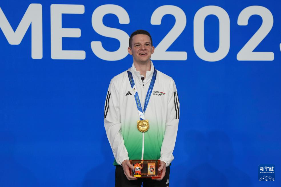 8月14日,男子花式台球冠军匈牙利选手索尔诺基在颁奖仪式上。