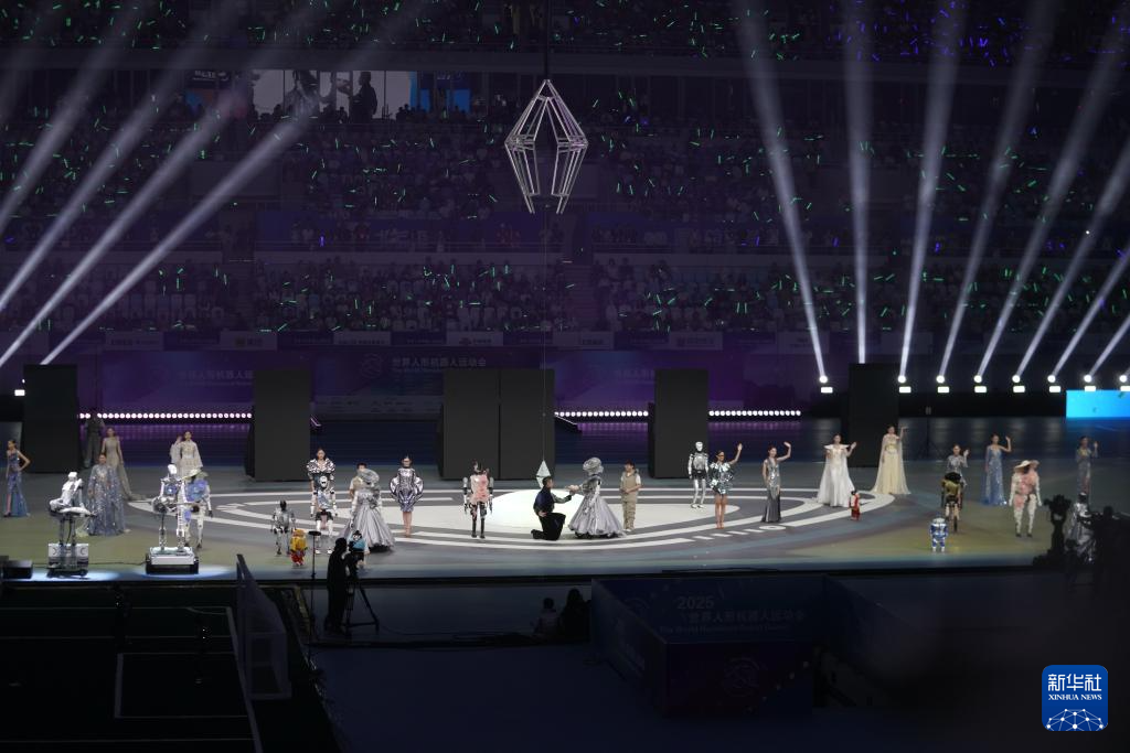 当日,2025世界人形机器人运动会在北京国家速滑馆“冰丝带”开幕。