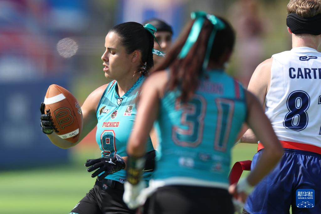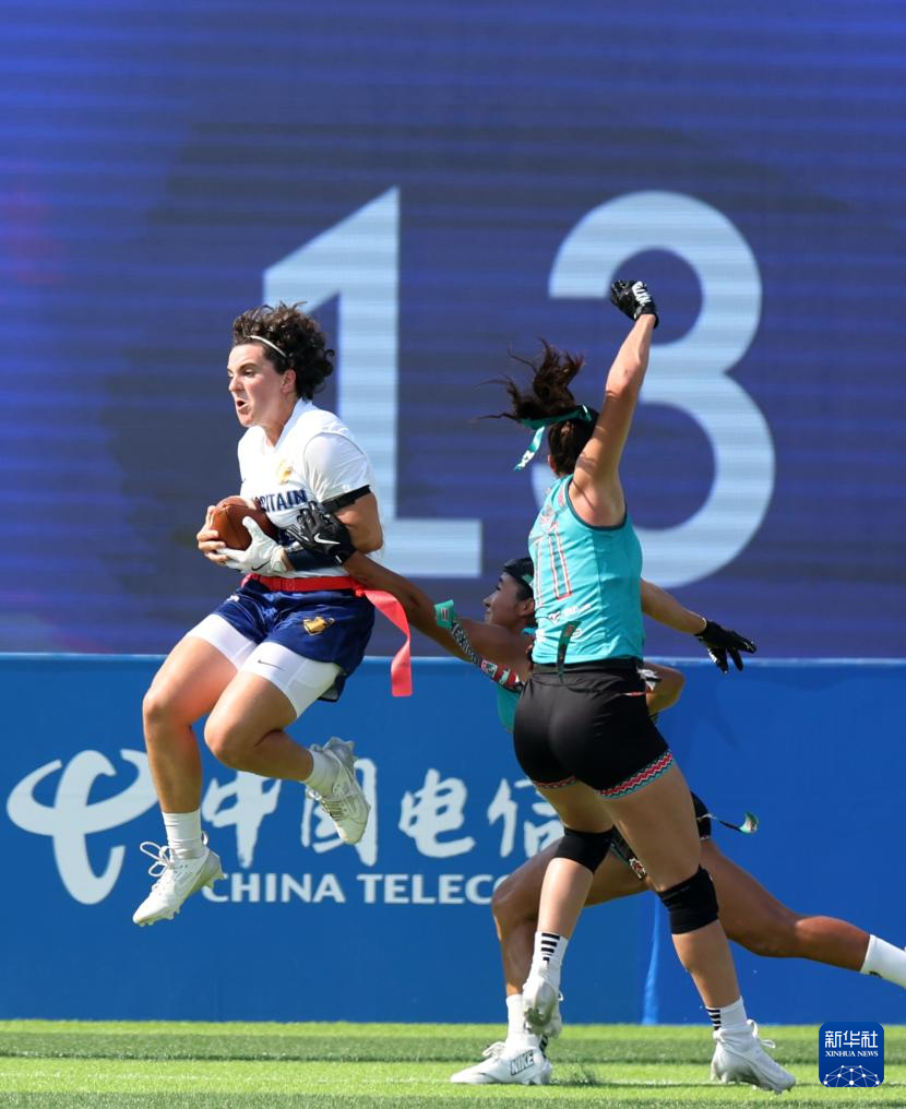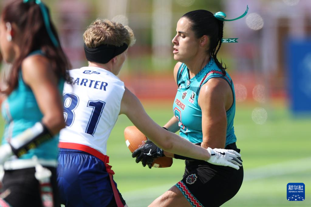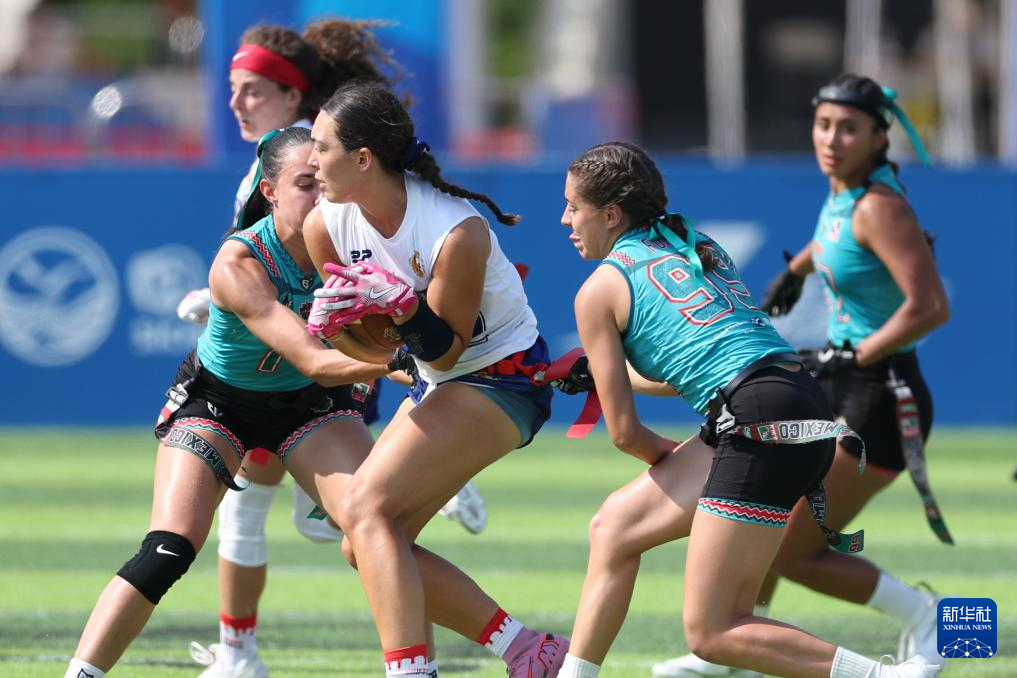当日,在2025年成都世运会腰旗橄榄球女子预赛B组中,墨西哥队战胜英国队。