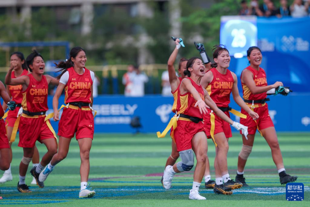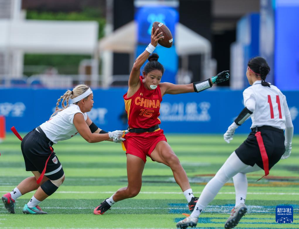 当日,在2025年成都世运会腰旗橄榄球女子5-8名安慰赛半决赛中,中国队战胜日本队。