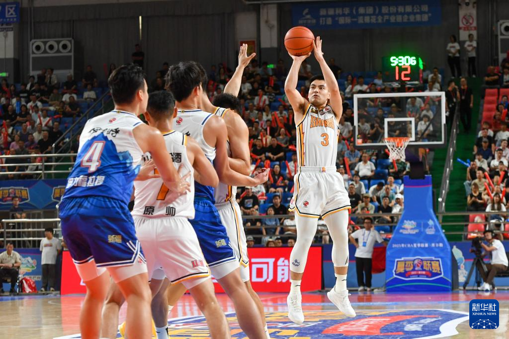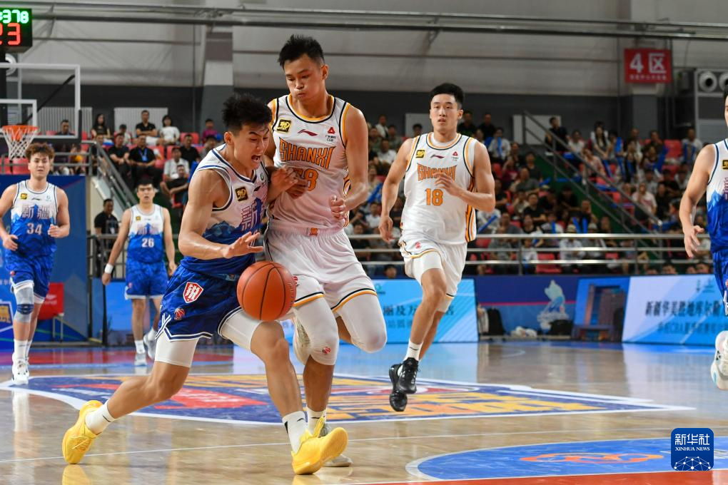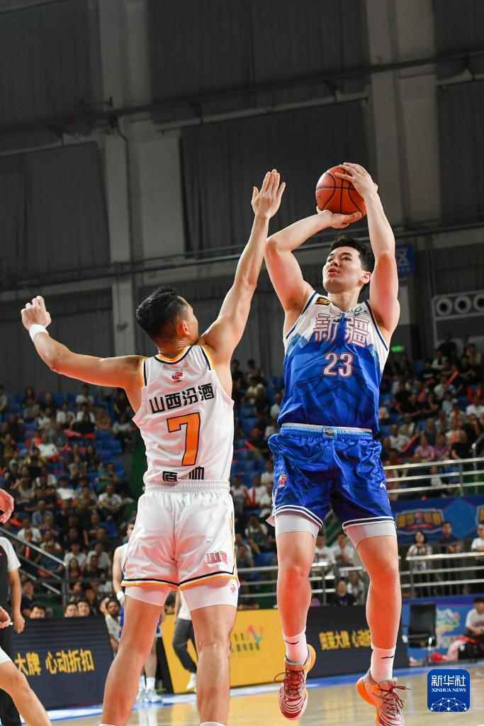 8月15日,山西汾酒队球员贾明儒(右一)在比赛中投篮。