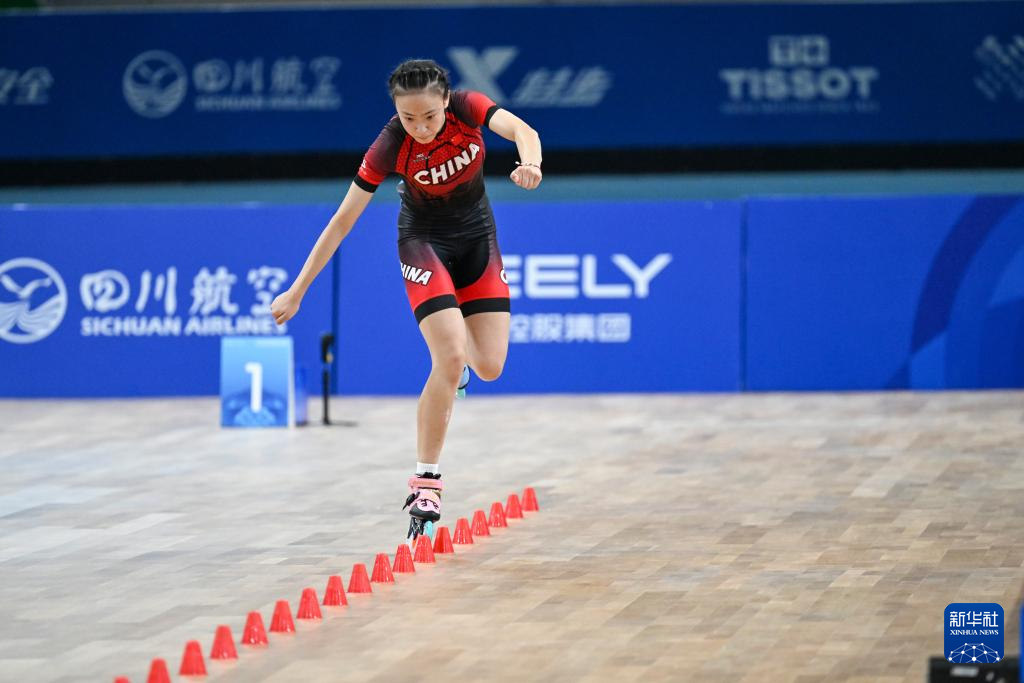 当日,在2025年成都世运会自由式轮滑女子速度过桩决赛中,中国台北选手刘巧兮获得冠军,中国选手朱思怡、温晶晶分获亚军、季军。