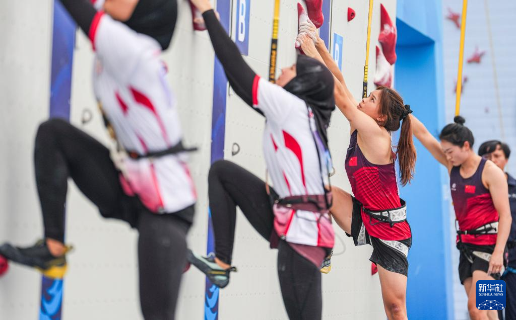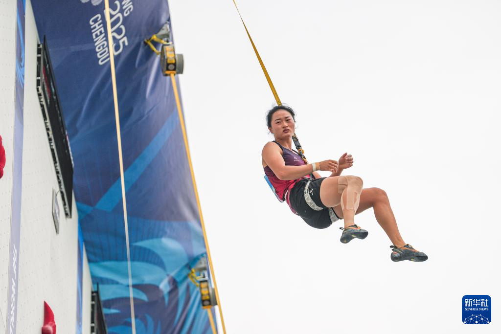 当日,在2025年成都世运会攀岩女子速度接力资格赛中,中国组合覃于妹/张少琴和周娅菲/邓丽娟双双晋级淘汰赛。