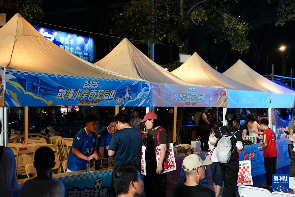 当日,在江苏南京举行的2025江苏省城市足球联赛第九轮比赛中,南京队对阵盐城队。南京市在部分商场、街区等地设置观赛“第二现场”,使用大屏幕同步直播赛事,同时设有游戏互动区、烟火市集区,让球迷们度过欢乐时光。