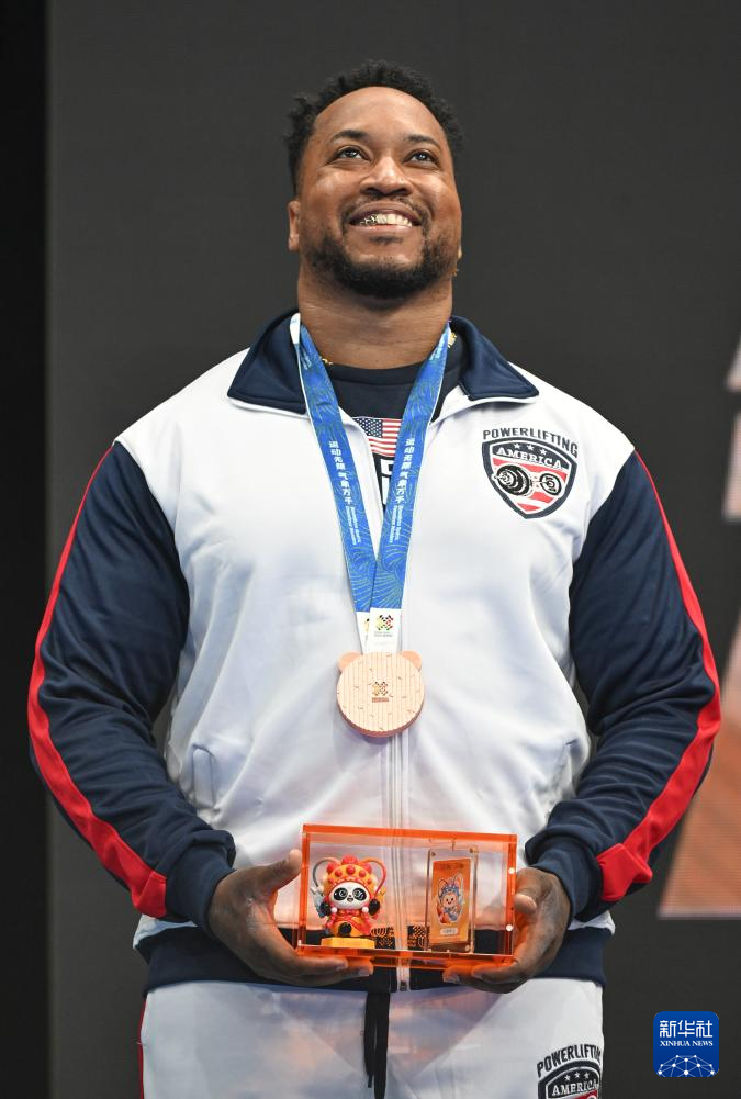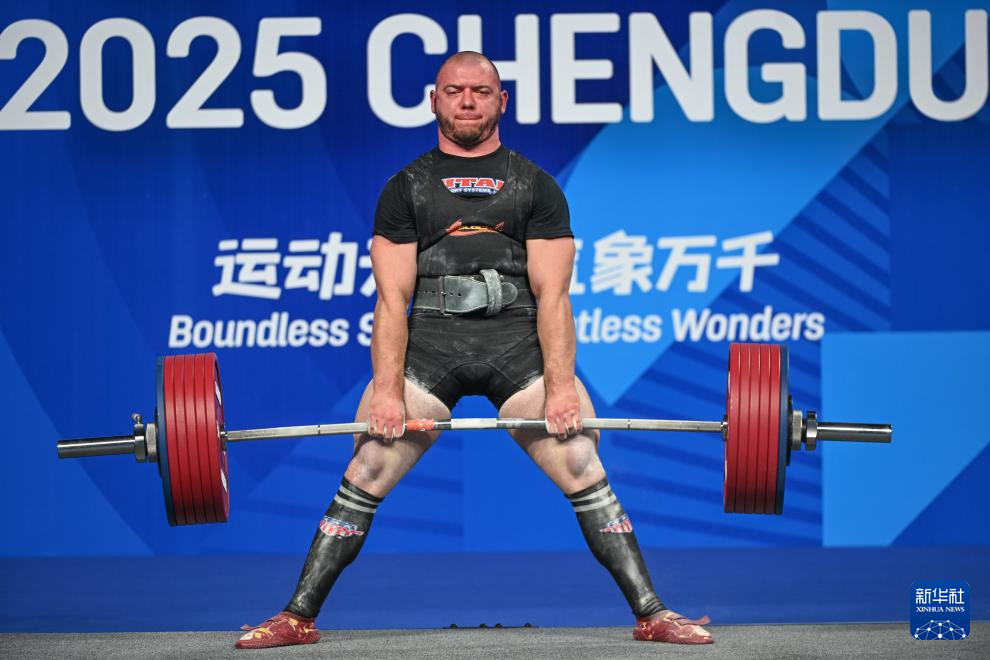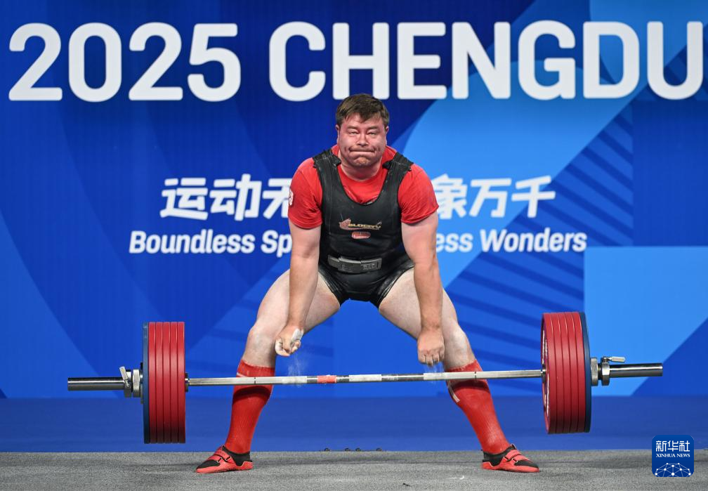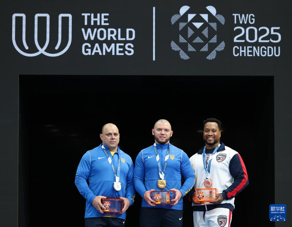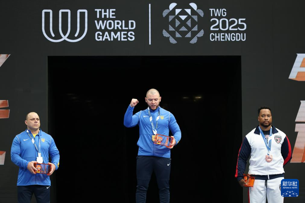 当日,在2025年成都世运会力量举男子装备重量级决赛中,乌克兰选手康斯坦丁和队友弗拉基米尔分获冠军和亚军,美国选手贝尔获得季军。