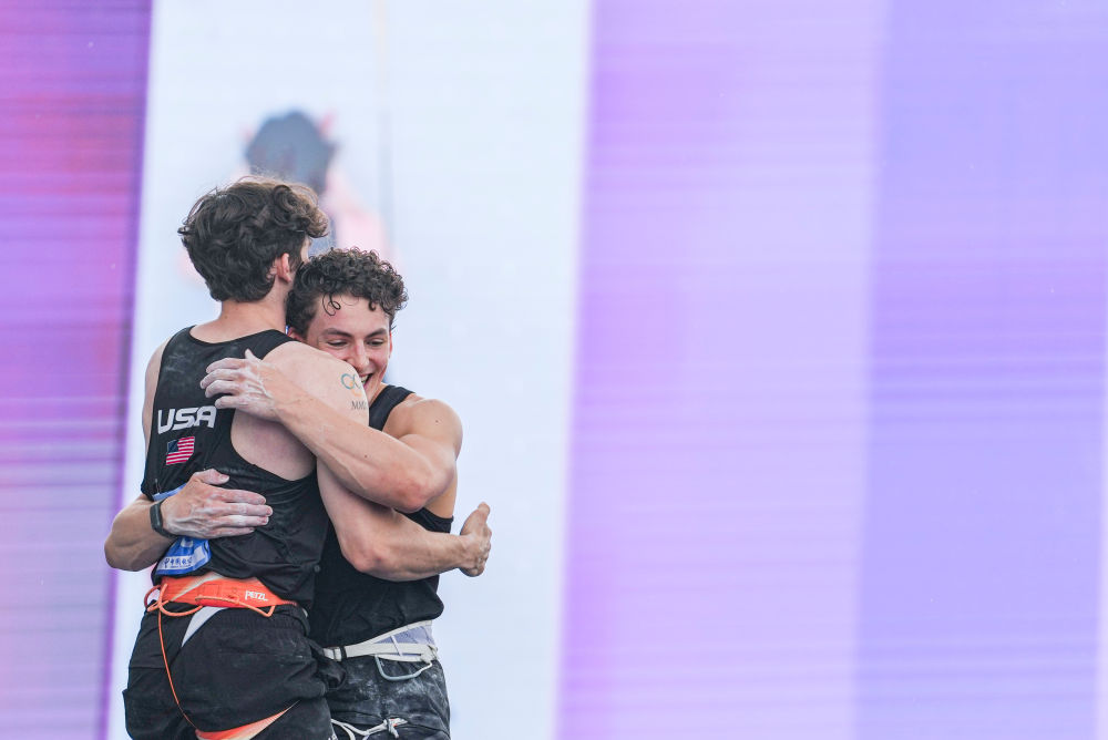 美国组合塞缪尔·沃森/扎卡里·哈默以创世界纪录的10秒06佳绩摘铜。赛后,哈默既兴奋又难掩遗憾,“我们在训练里其实爬出过9秒7!我肯定想爬进10秒。要做到这点,你需要一个队里的两个人都爬进5秒,这在速度攀岩里是个堪称标杆的成绩。”