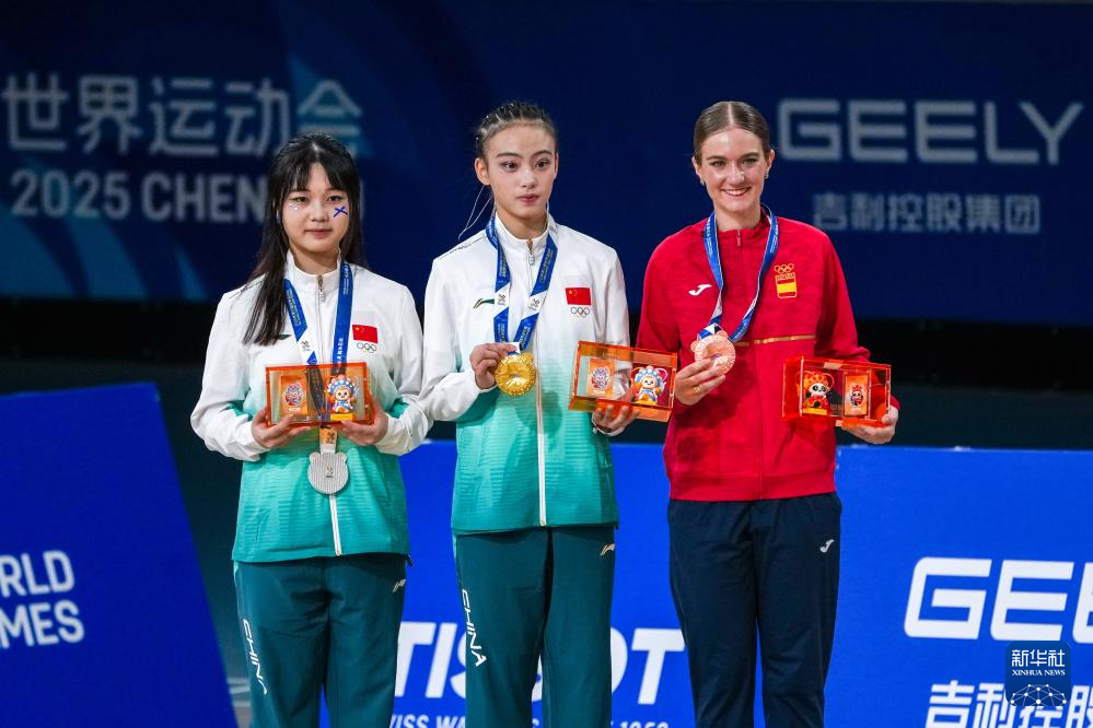 当日,在成都轮滑运动中心举行的2025年成都世运会自由式轮滑女子花式绕桩决赛中,中国选手朱思怡、刘佳欣包揽冠亚军,西班牙选手奥里亚·阿尔韦尔达获得季军。