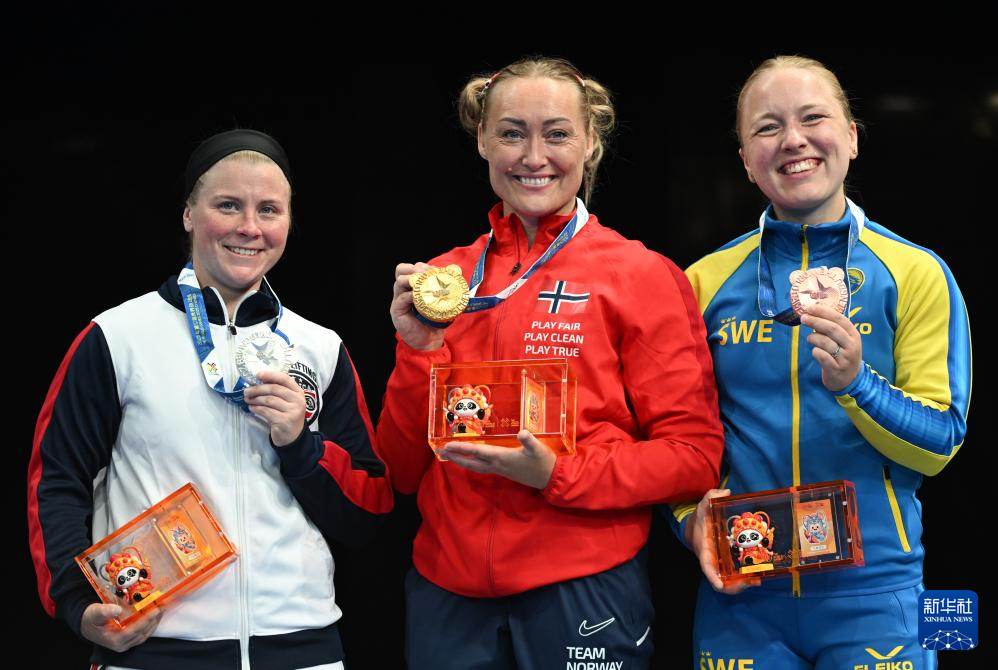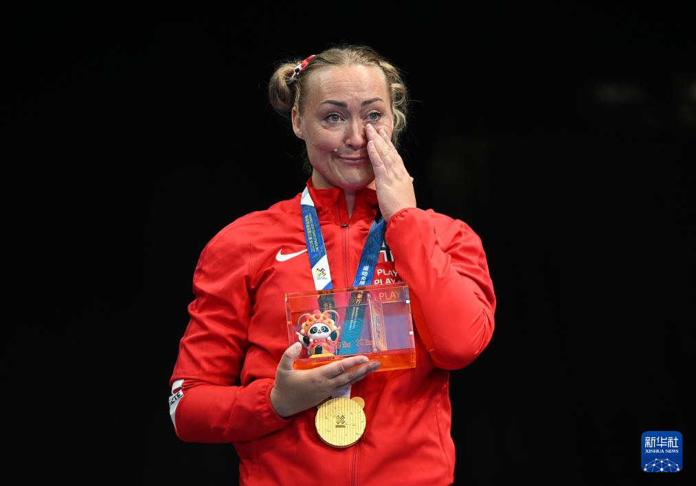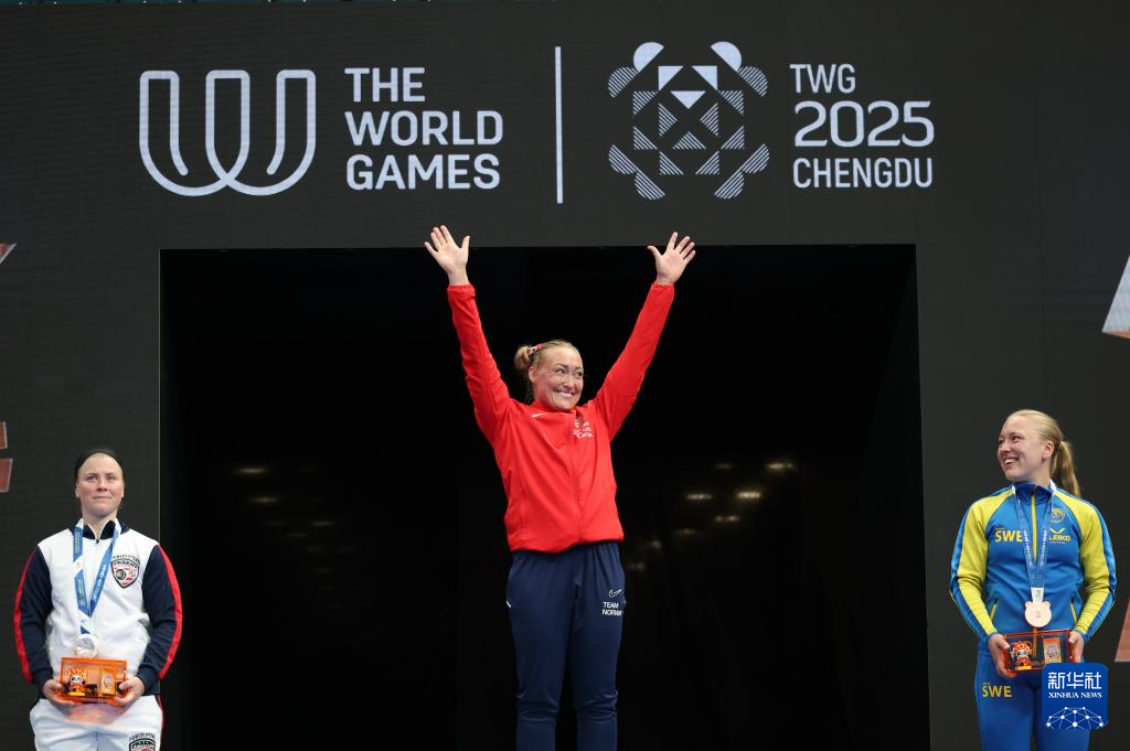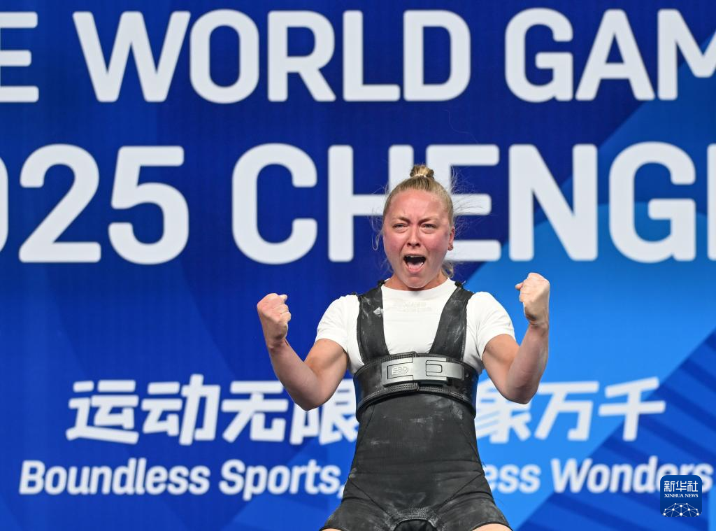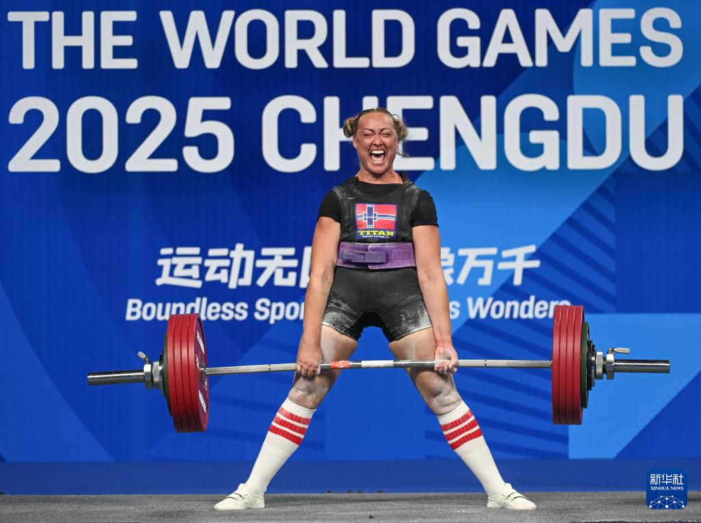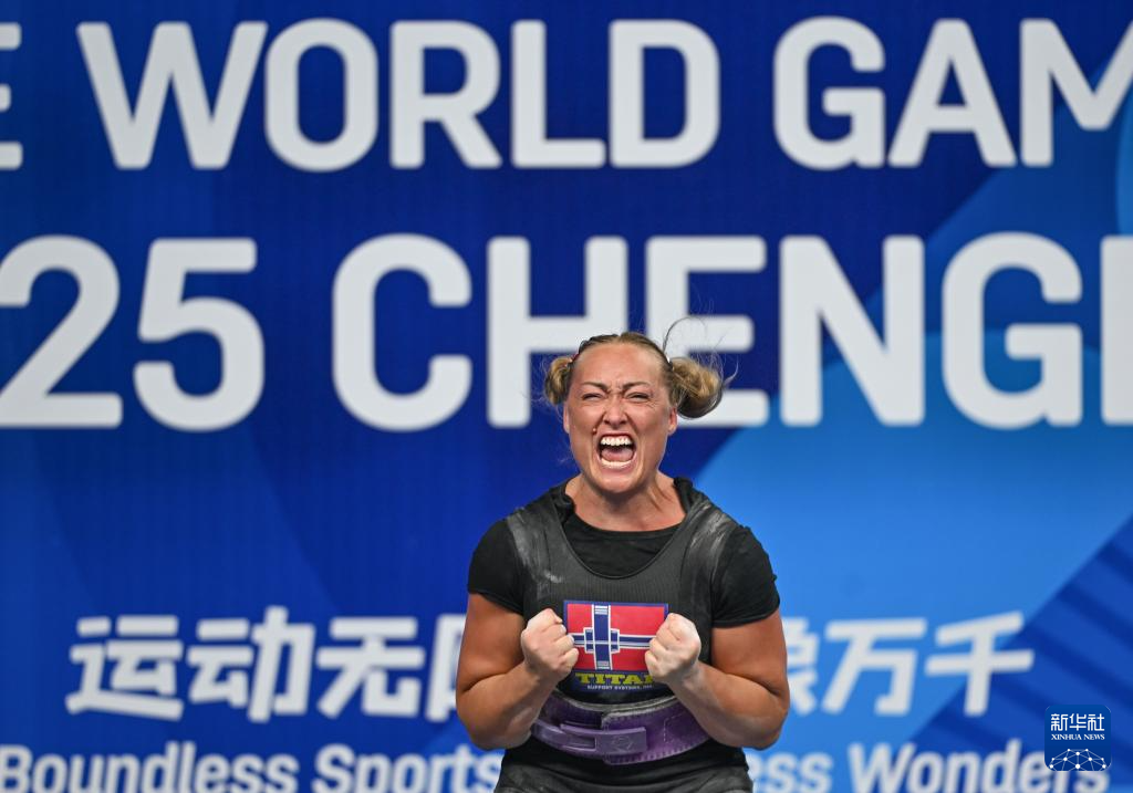 当日,在2025年成都世运会力量举女子装备重量级决赛中,挪威选手埃尔韦鲁姆获得冠军,美国选手麦卡锡和瑞典选手维尔马尔分获亚军和季军。