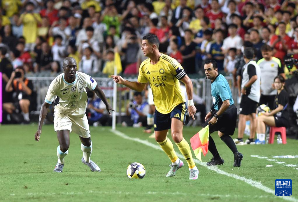 当日,在香港举行的沙特超级杯足球赛中,利雅得胜利队2比1战胜吉达联合队。