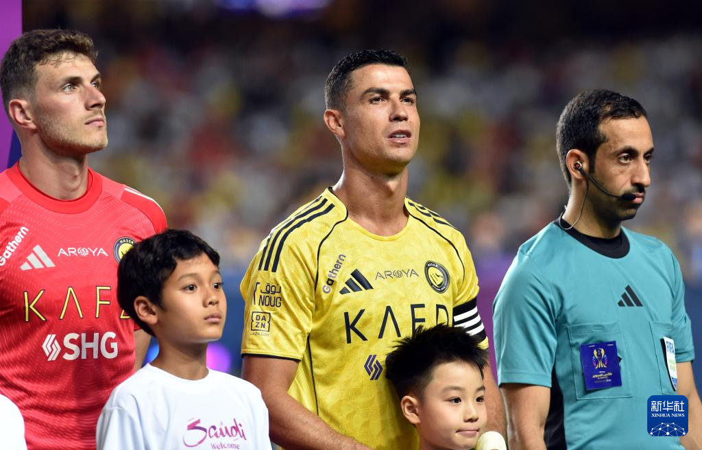 8月19日,利雅得胜利队球员克里斯蒂亚诺·罗纳尔多(前右)在比赛中。