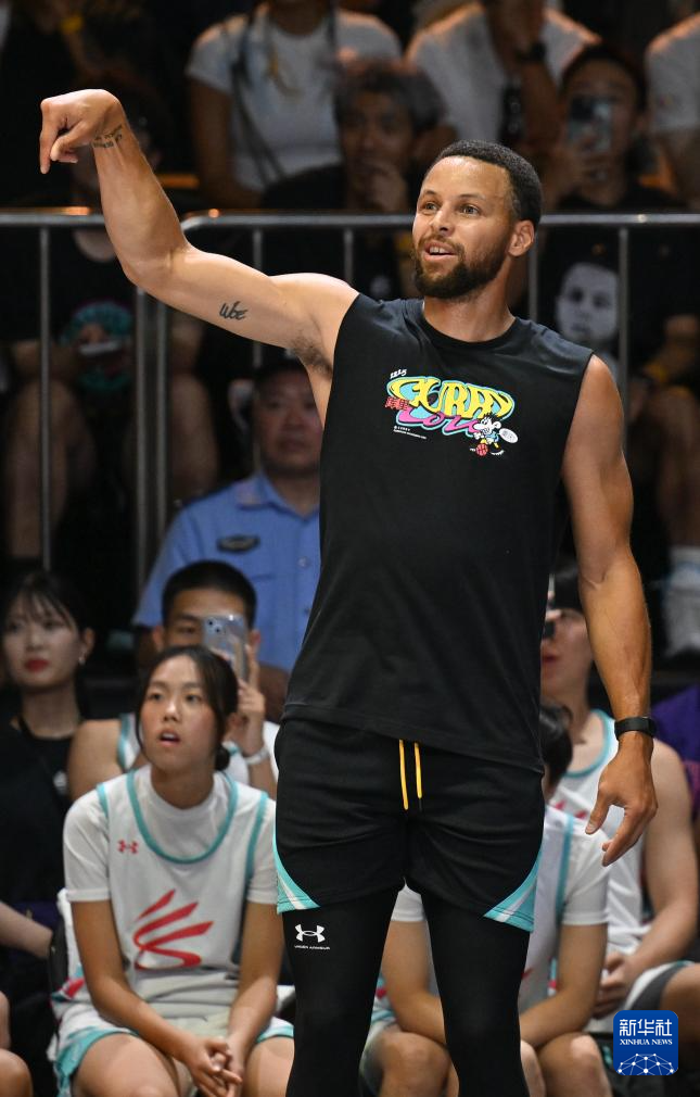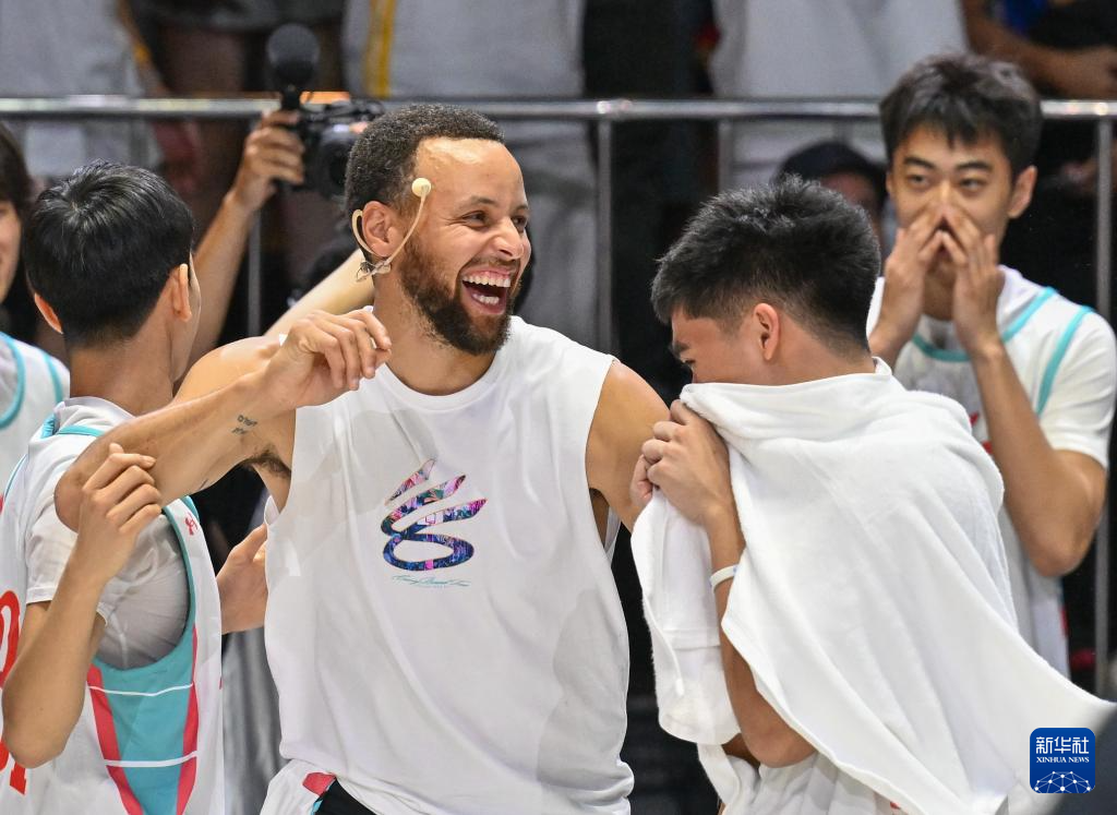 8月20日,库里(中)在赛场边指导球员。