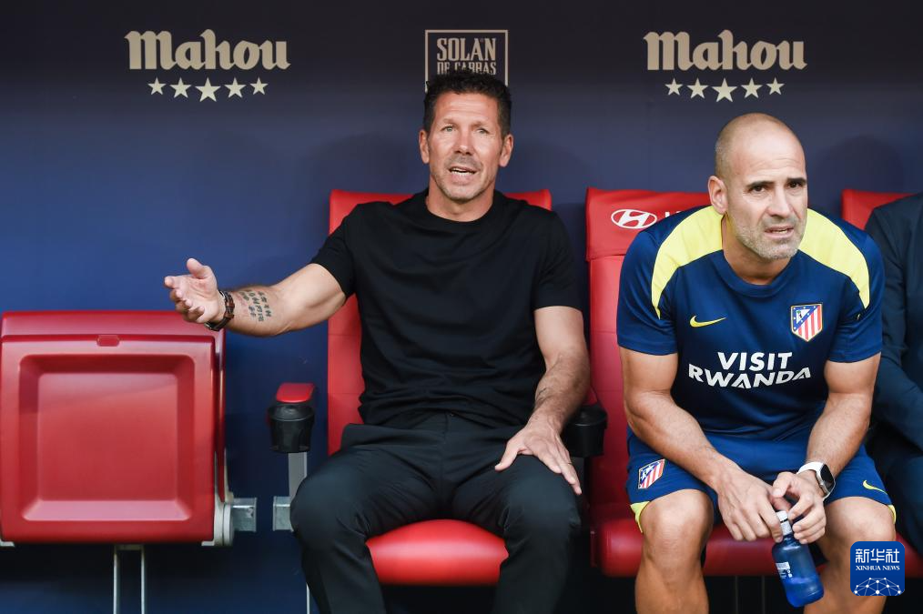 8月23日,马德里竞技队主教练西蒙尼(左)在比赛前。