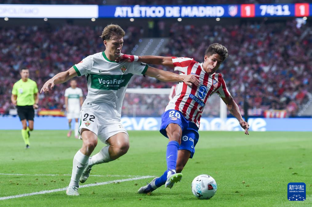 当日,在2025-2026赛季西班牙足球甲级联赛第二轮比赛中,马德里竞技队主场1比1战平埃尔切队。