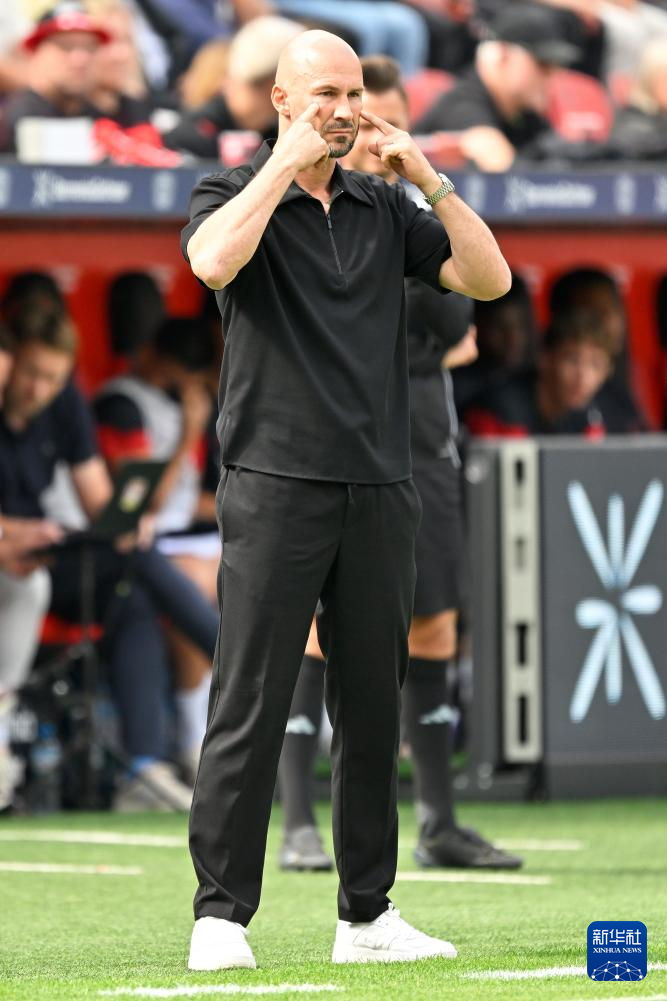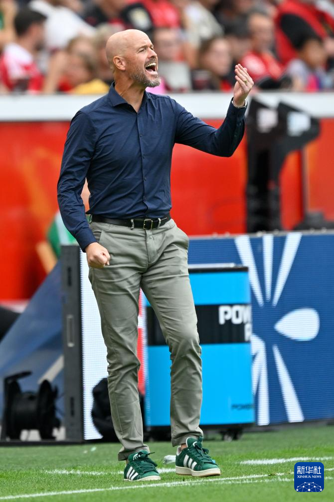8月23日,勒沃库森队主教练滕哈格在场边指导。