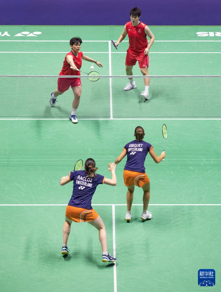 当日,在巴黎举行的2025年世界羽毛球锦标赛女双第二轮比赛中,中国组合刘圣书/谭宁2比0战胜瑞士组合阿米盖/拉克洛兹,晋级16强。