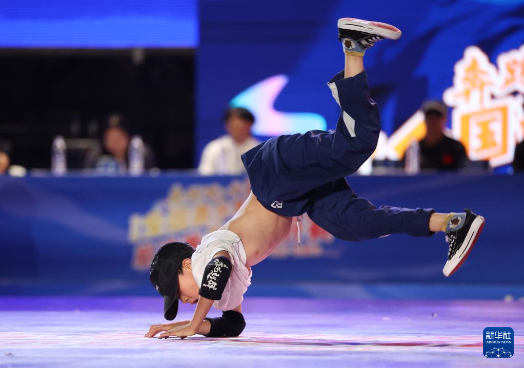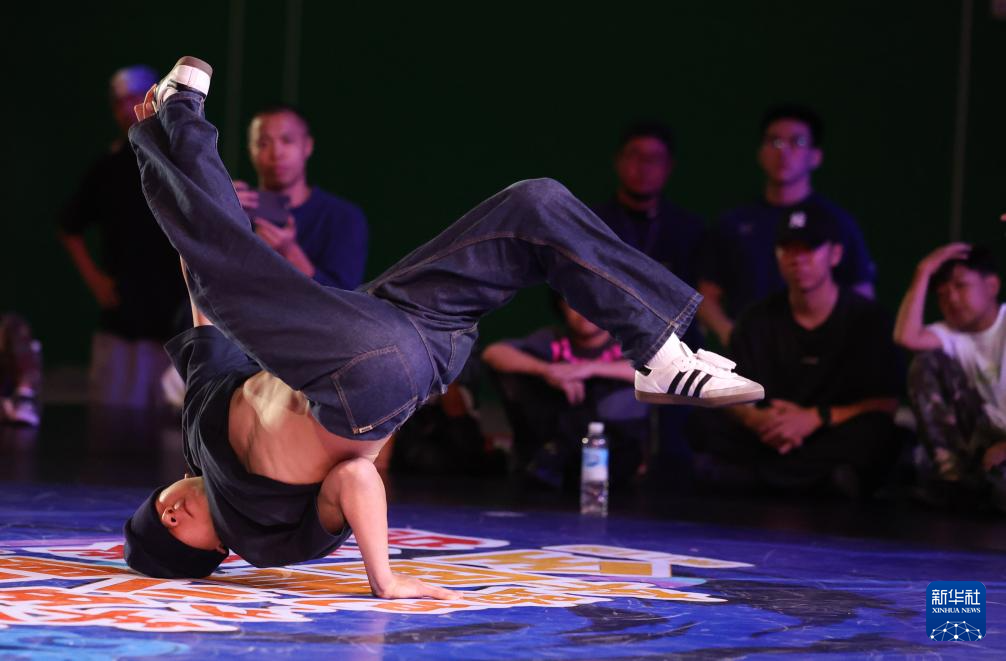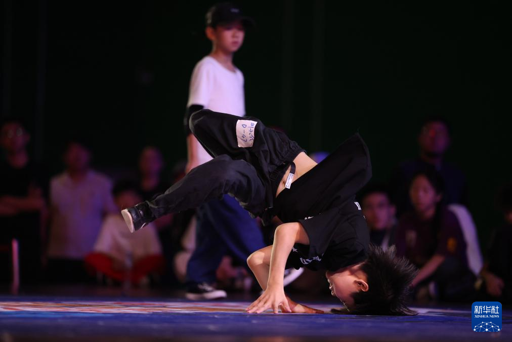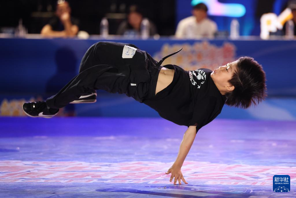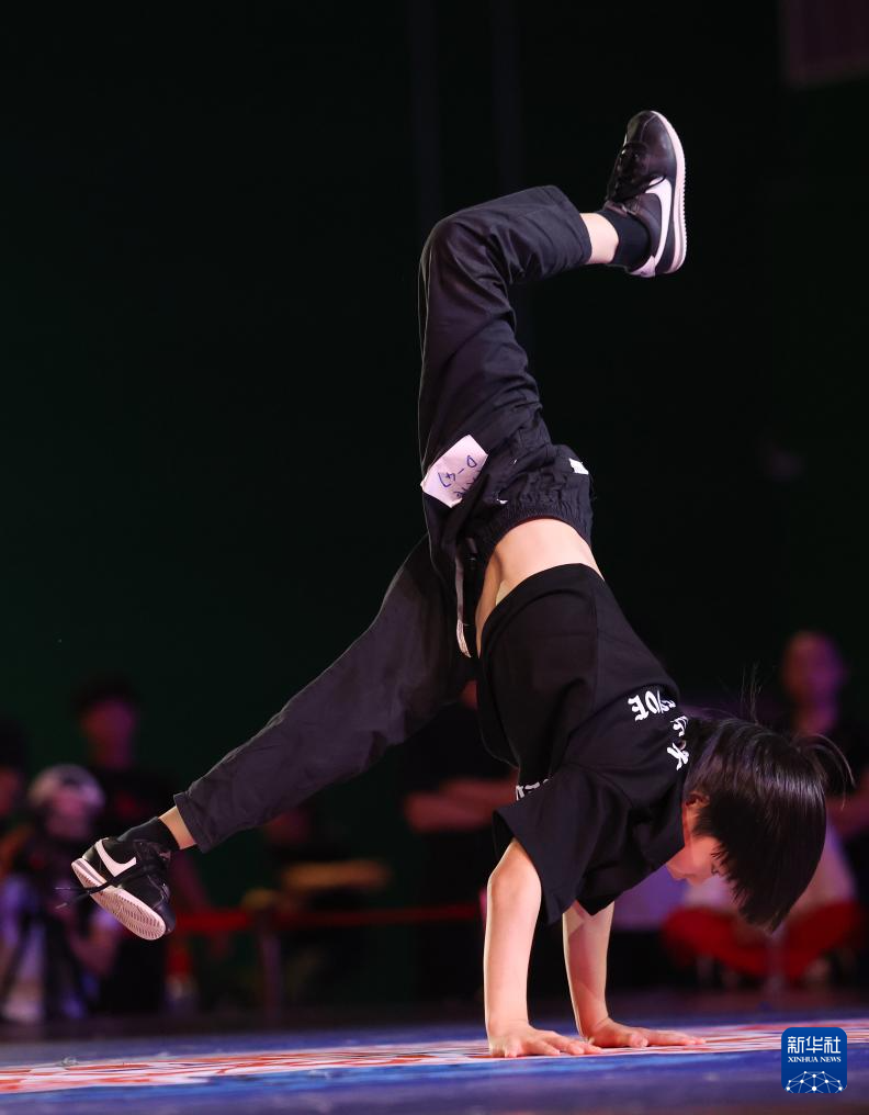 8月27日,何睿楠在比赛中。最终,他获得霹雳舞U18组冠军。新华社发(梁子栋 摄)
