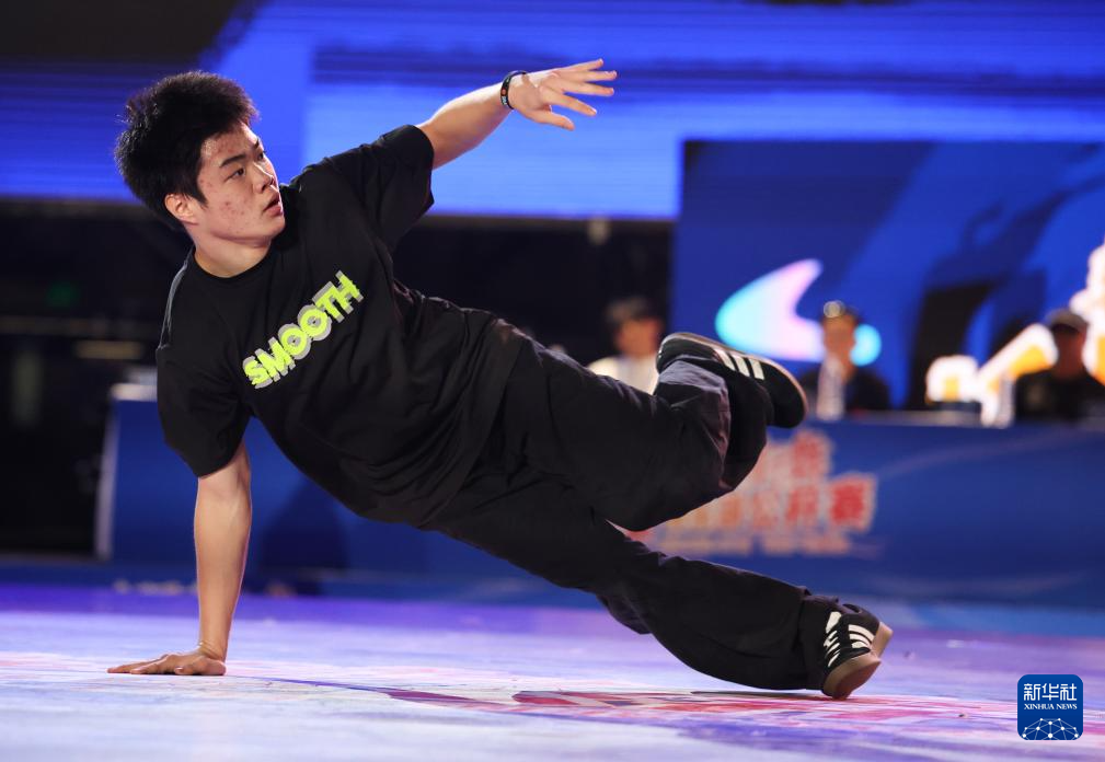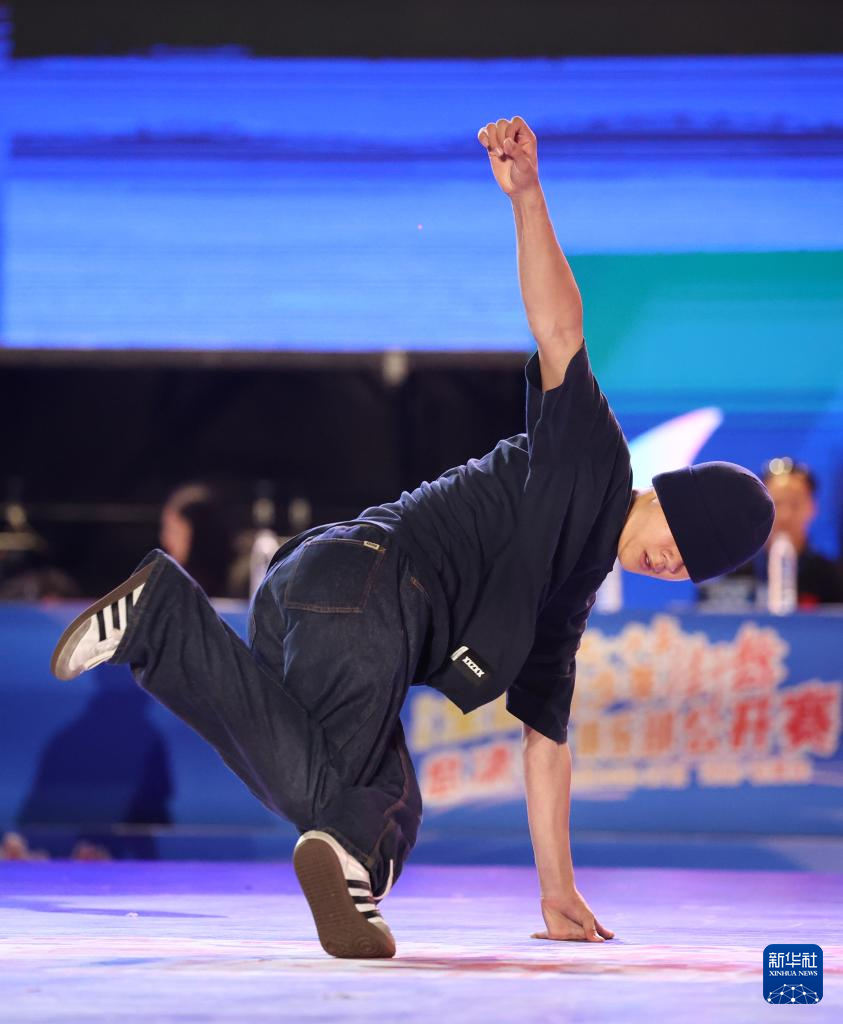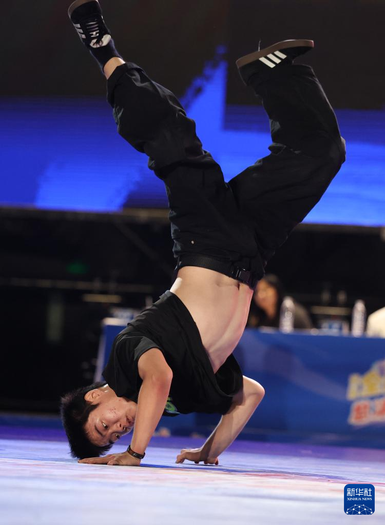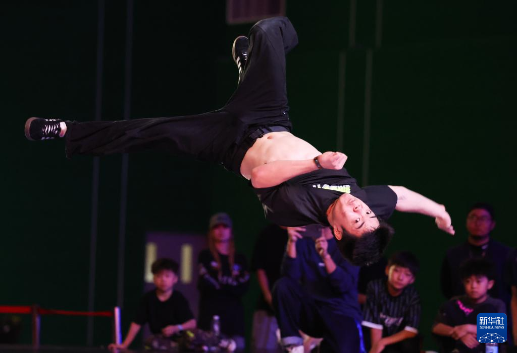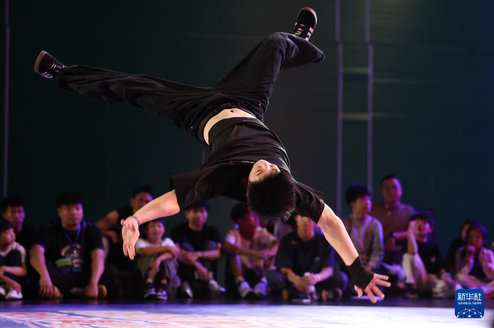 8月27日,何睿楠在比赛中。最终,他获得霹雳舞U18组冠军。新华社发(梁子栋 摄)