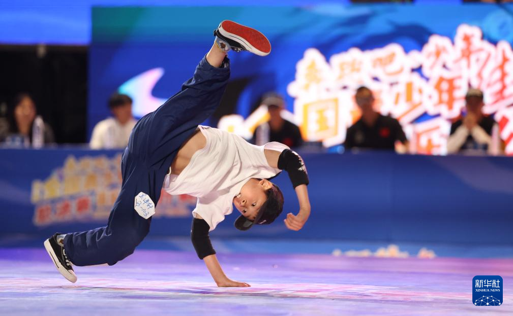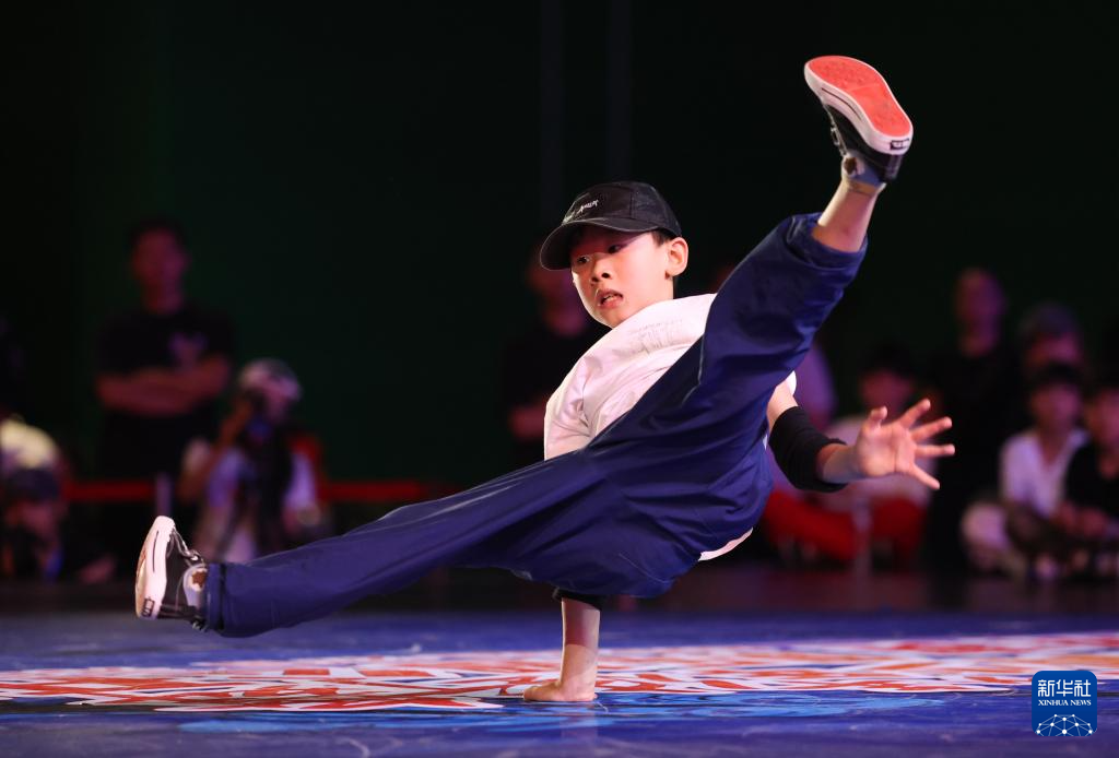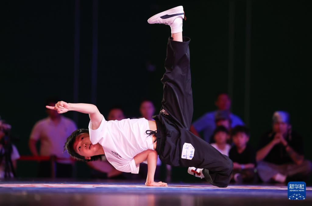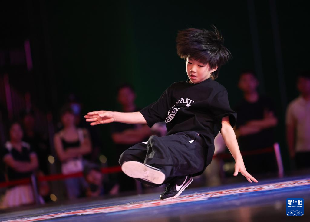8月27日,蔡哲杭在比赛中。最终,他获得霹雳舞U10组第四名。新华社发(梁子栋 摄)