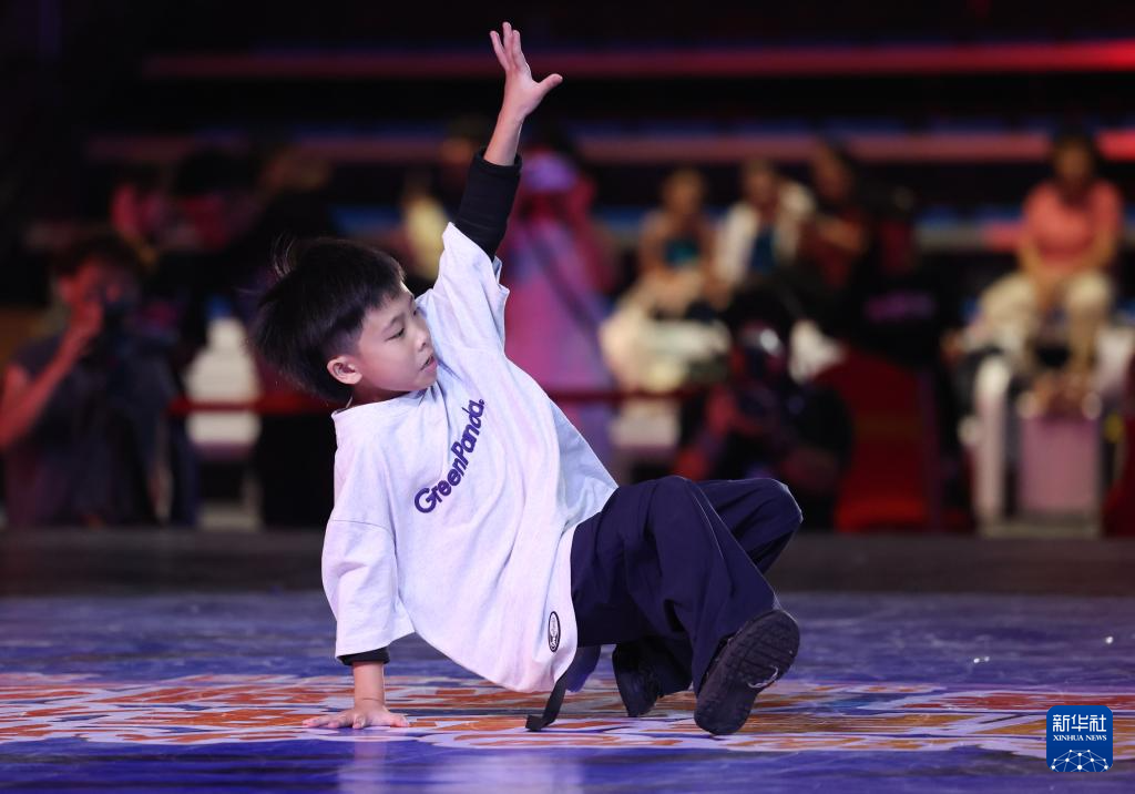 8月27日,陈子安在比赛中。最终,他获得霹雳舞U10组季军。新华社发(梁子栋 摄)