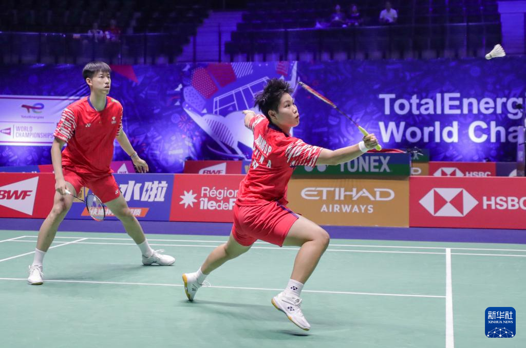 8月27日,中国组合冯彦哲(左)/黄东萍在比赛中。新华社记者 张帆 摄