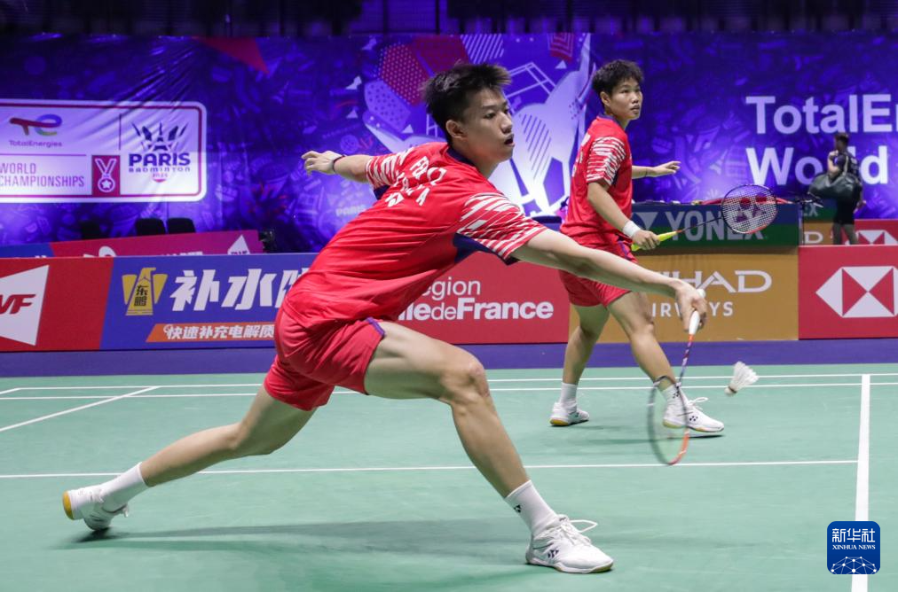 8月27日,中国组合冯彦哲/黄东萍(右)在比赛中。新华社记者 张帆 摄