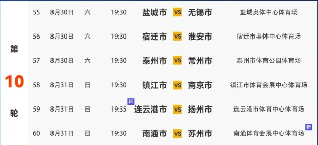 江苏省城市足球联赛第十轮对阵表
