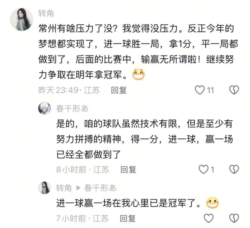 江苏省城市足球联赛官方公众号留言截图