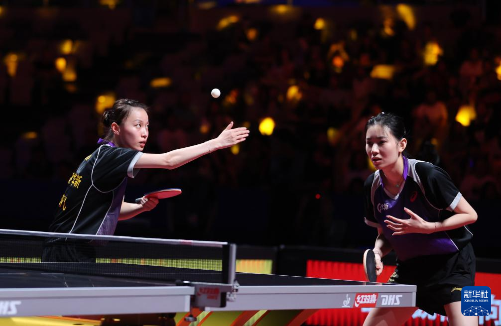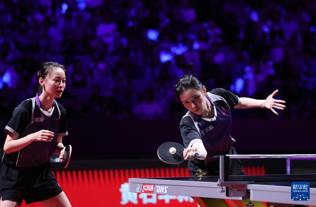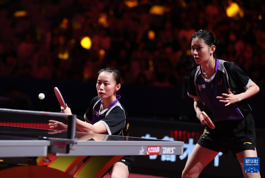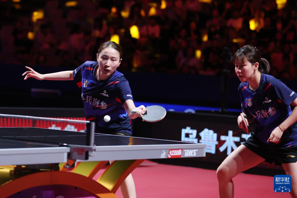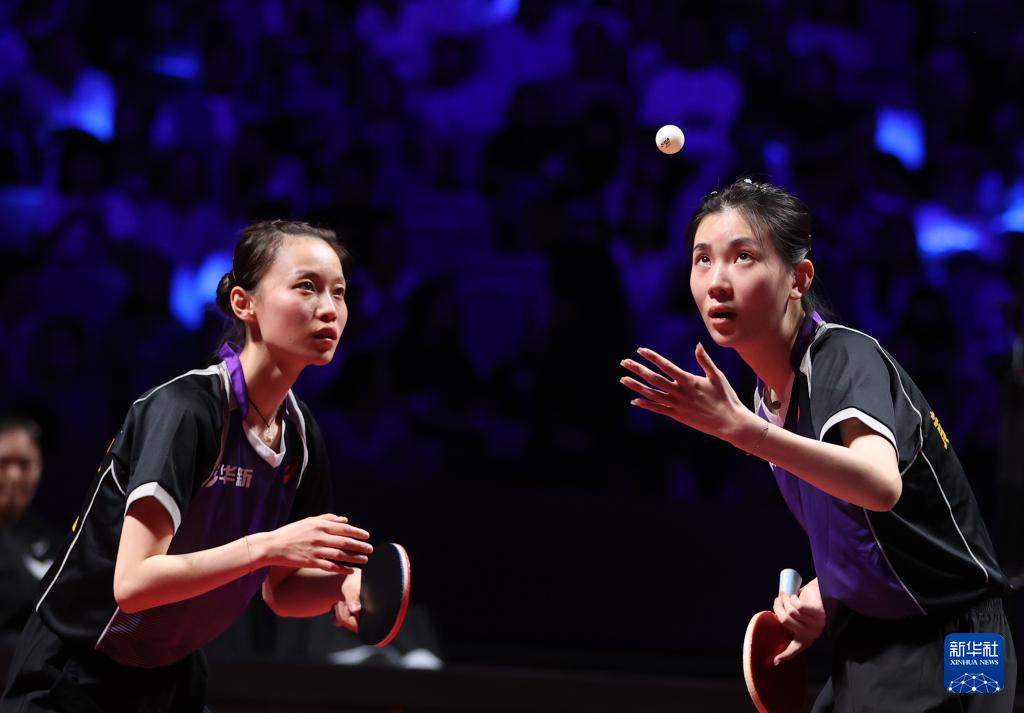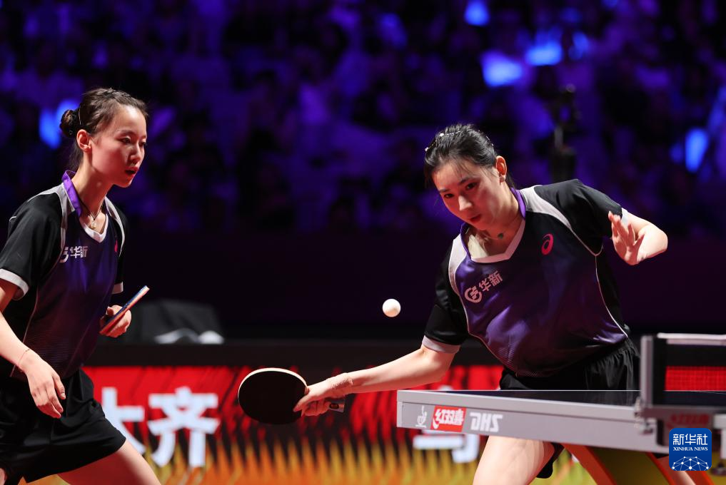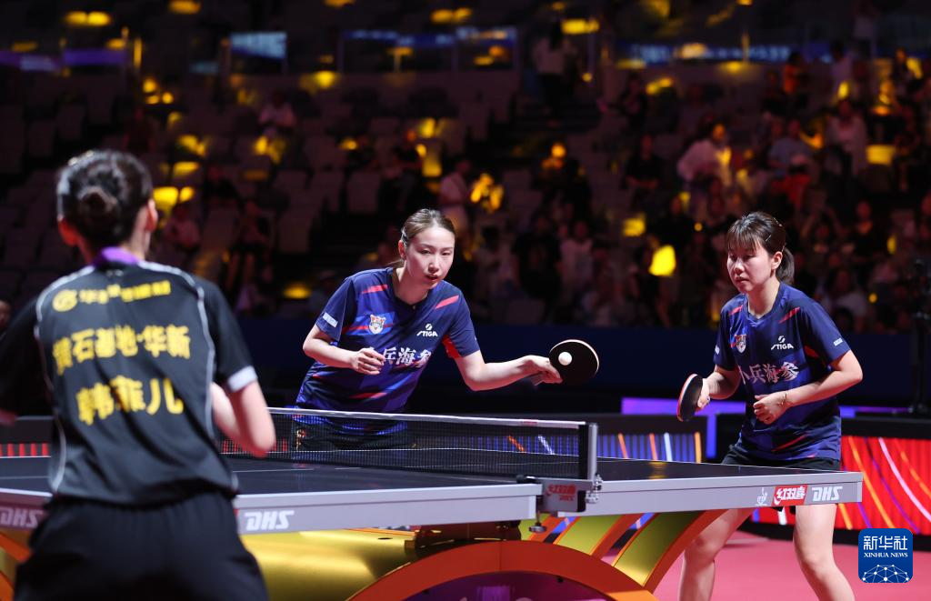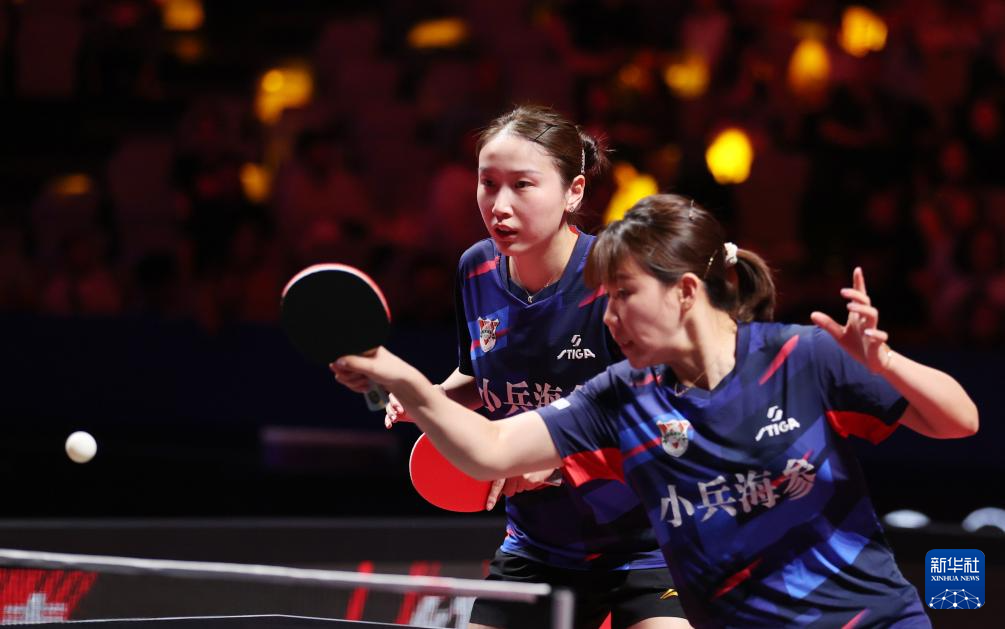 8月29日,山东鲁能队组合钱天一(左)/陈幸同在比赛中。她们在双打比赛中3比2战胜黄石华新队组合韩菲儿/王添艺。新华社发(张利民 摄)