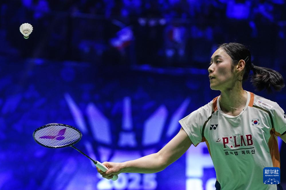 当日,在巴黎举行的2025年世界羽毛球锦标赛女单四分之一决赛中,韩国选手安洗莹2比0战胜另一名韩国选手沈有振,晋级四强。