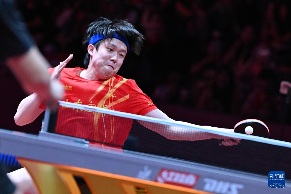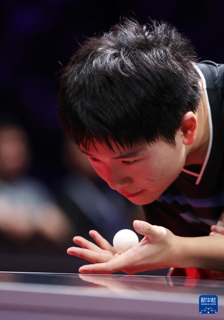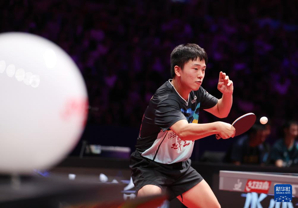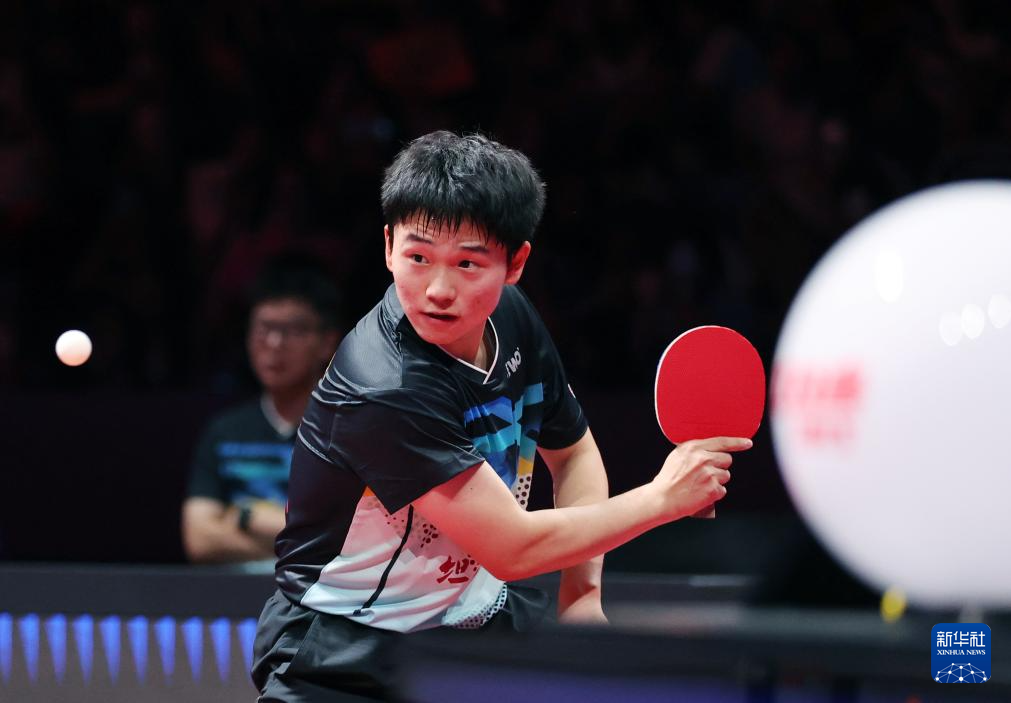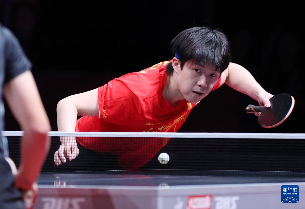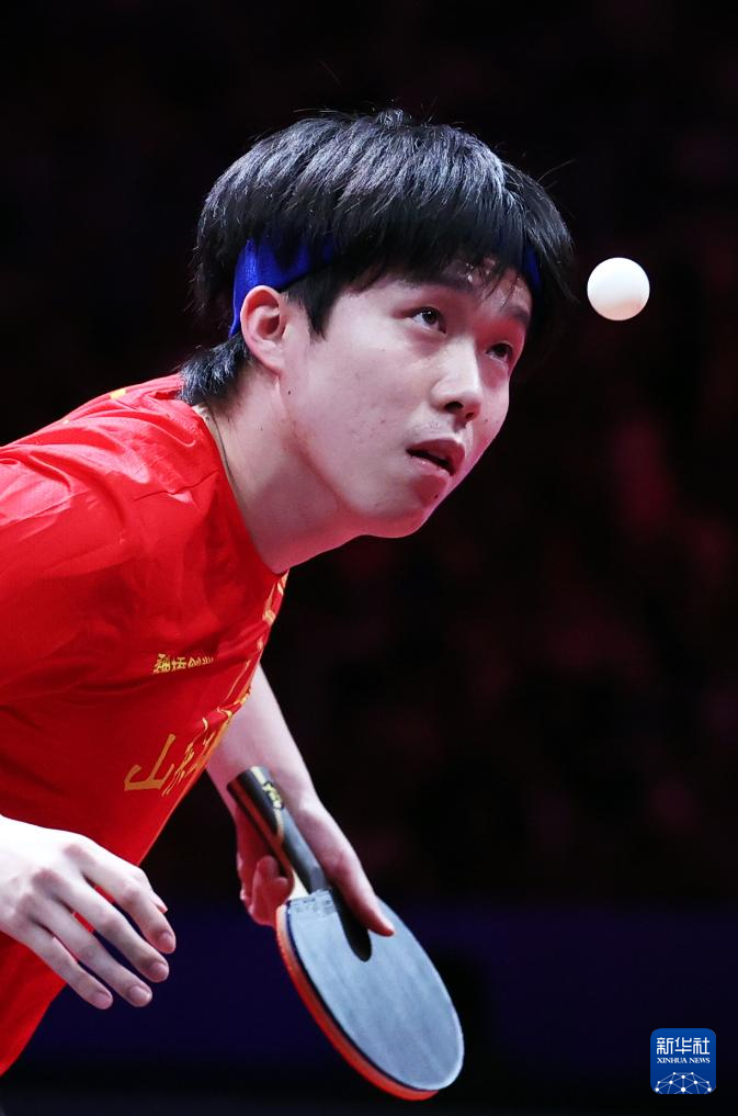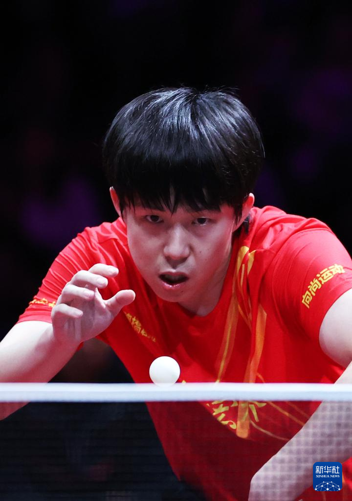 8月29日,山东魏桥·向尚运动队选手王楚钦在比赛中回球。他在单打比赛中3比0战胜中超电缆·福建安井队选手李天阳。