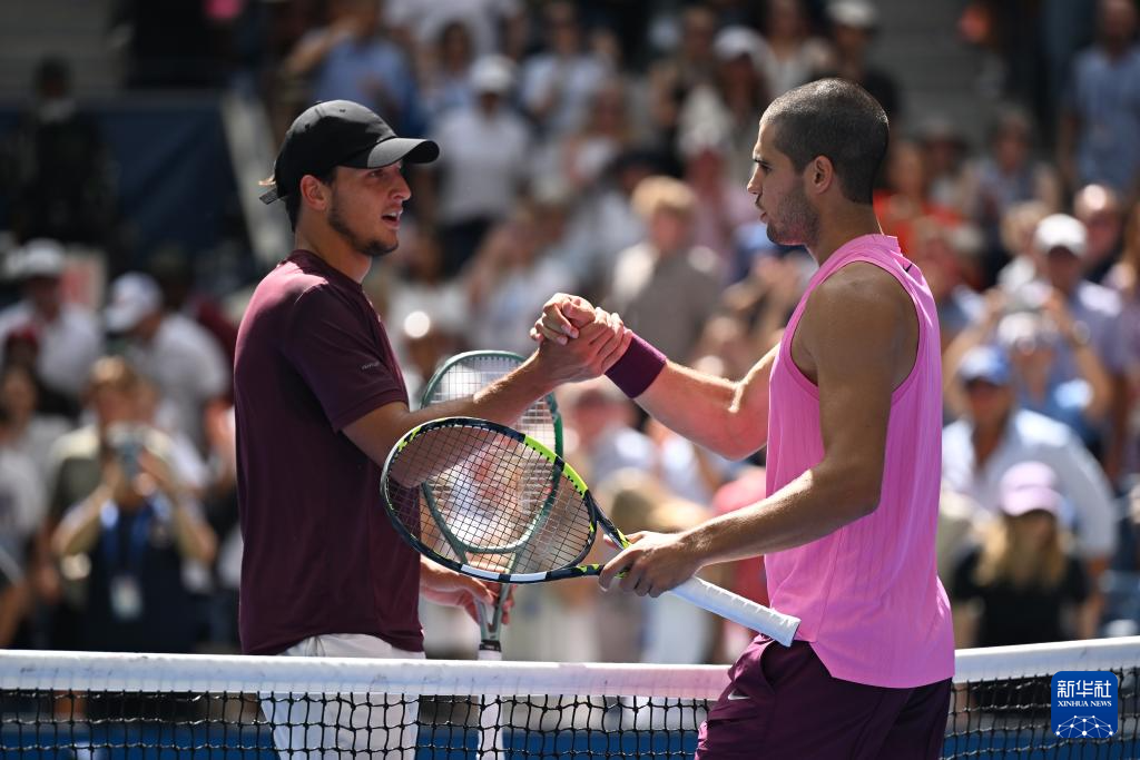 8月29日,阿尔卡拉斯(右)和达尔德里在比赛后握手致意。