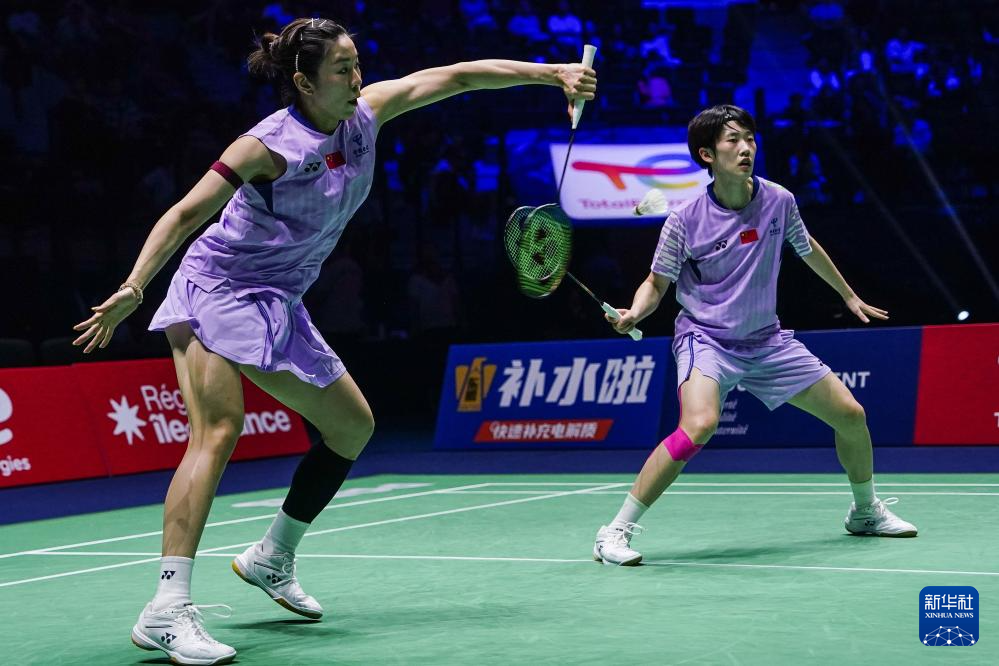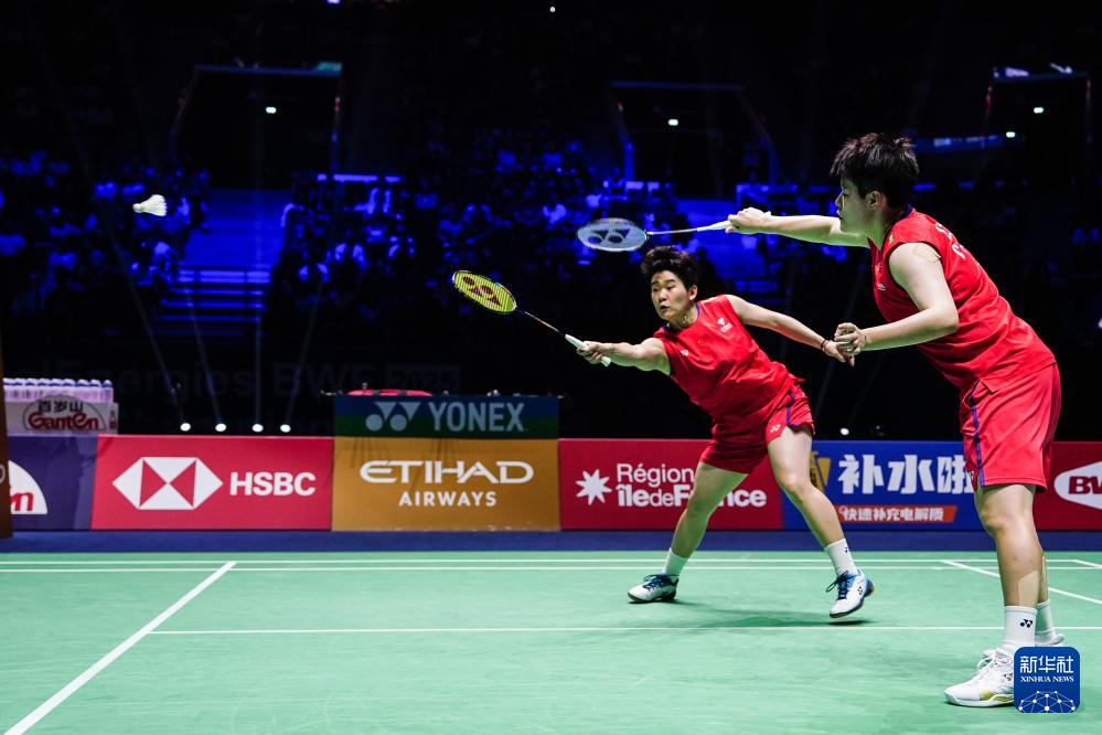 当日,在巴黎举行的2025年世界羽毛球锦标赛女双四分之一决赛中,中国组合刘圣书/谭宁2比1战胜另一对中国组合贾一凡/张殊贤,晋级四强。